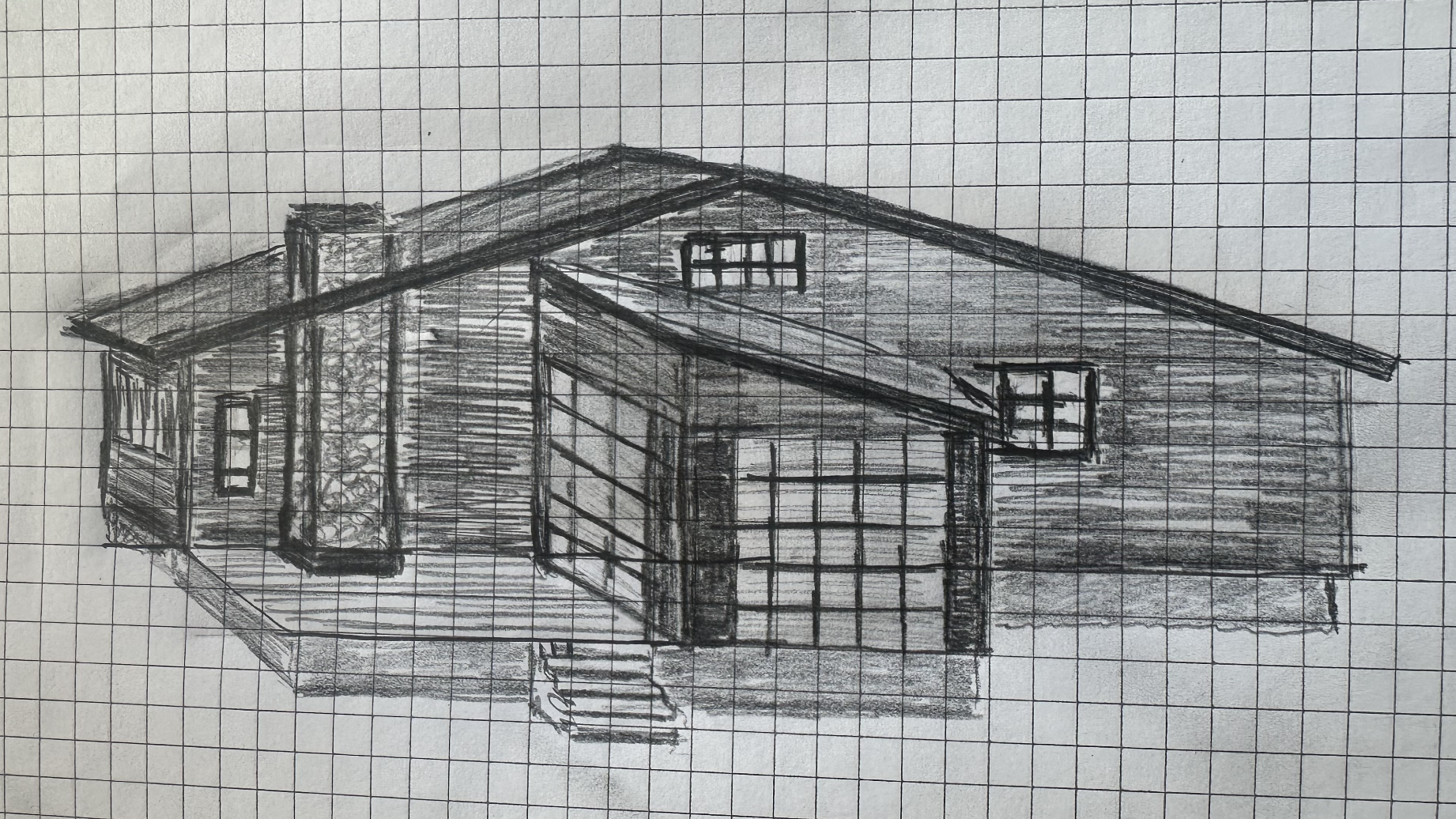 create a photorealistic image of a house based on the provided sketch accurately following the proportions structure and layout use realistic materials lighting and textures to make the house appear as a real built environment
