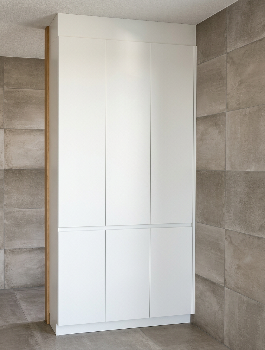 make this a photorealistic scene add some people trees and bushes the weather is sunny with a few clouds the grey parts in facade are zinc with vertical lines there are parking places on ground level the baluster on top level is made of glass keep original viewpoint no glass baluster on rooftop