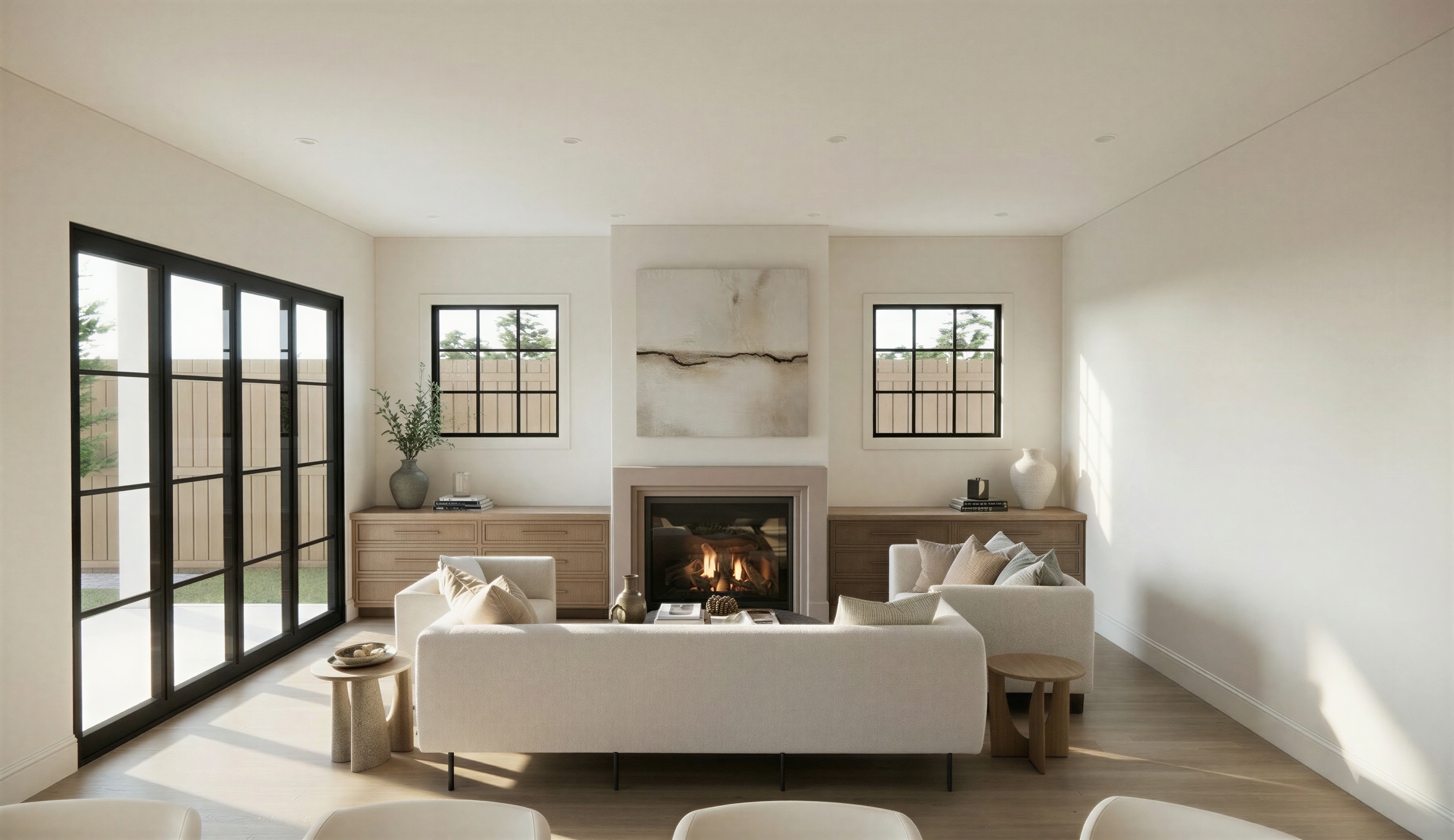 without changing any architecture selections or materials shift the camera angle to be more straight on as if someone took the image