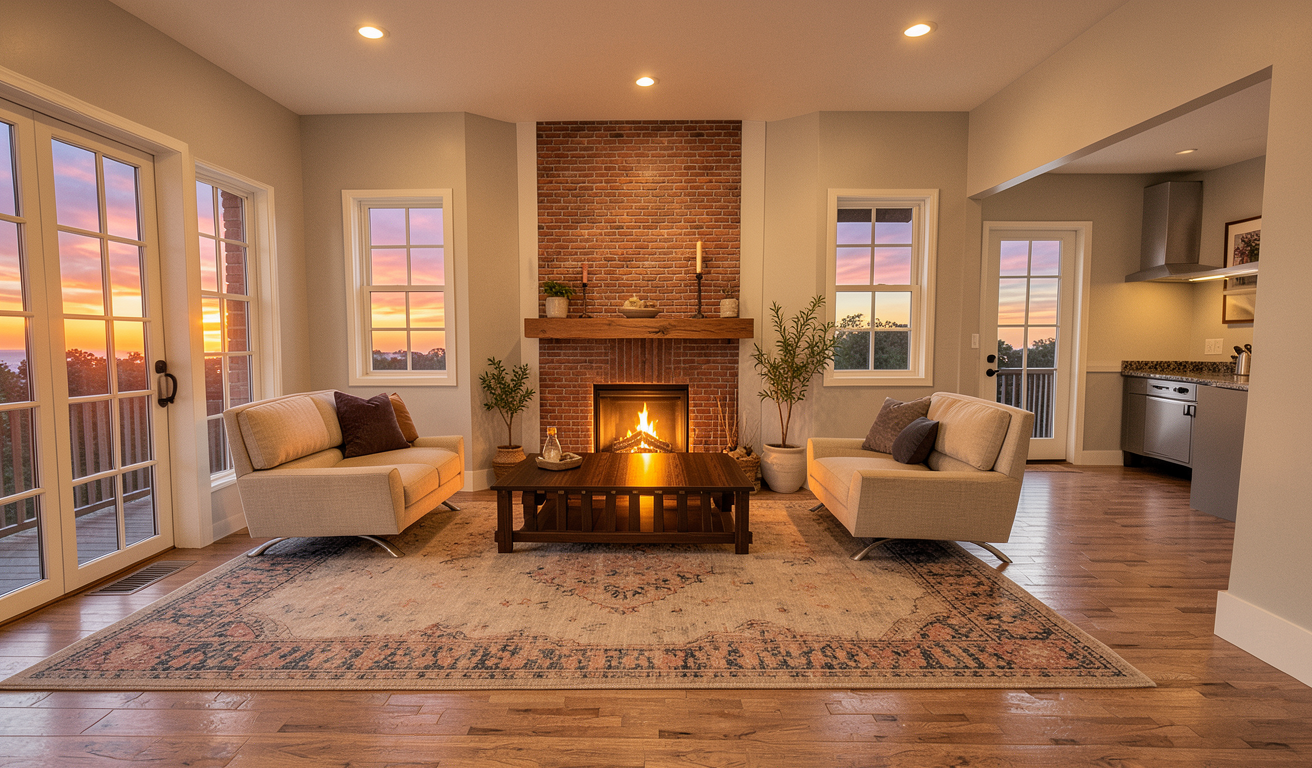 keep the exact same geometry scene content object positions materials textures and camera framing as the original render apply only atmosphere lighting mood and color grading set the scene at midday sky with thin soft clouds and a cool to warm gradient steel blue overhead transitioning to warm tones near the horizon use cinematic soft lighting with moderate contrast gentle shadows cool ambient fill and warm interior window glow inviting realistic wet ground with realistic reflections on asphalt paving subtle specular highlights very subtle bloom around light sources crisp but natural detail plus a very light atmospheric haze for depth color grade cool shadows cool midtones warm highlights teal in shadows and midtones warm highlights controlled saturation clean neutrals no oversaturation photorealistic architectural marketing render look balanced exposure slightly cool white balance remove the fog make it brighter