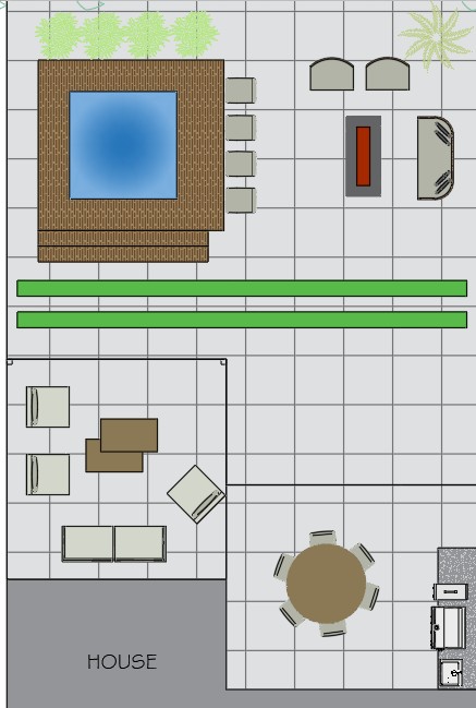 create a photorealistic 3d render of an outdoor area based on the uploaded floor plan
