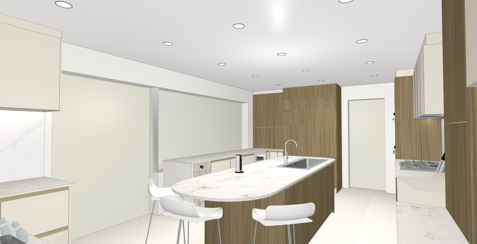 elegant kitchen cashemere and oak curved island good lighting no windows
