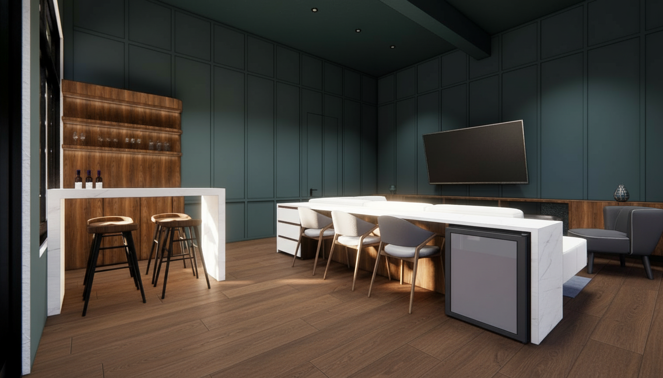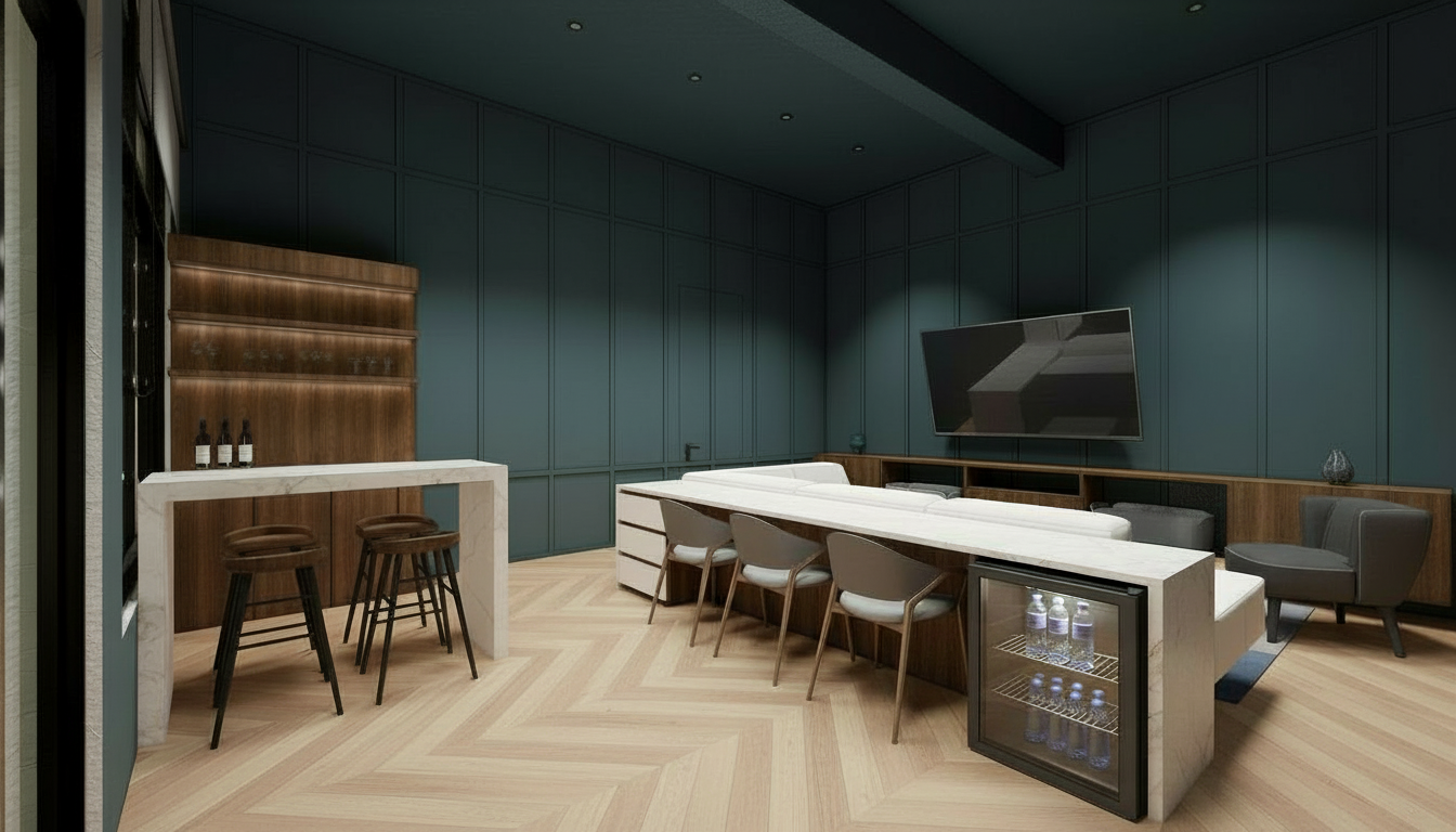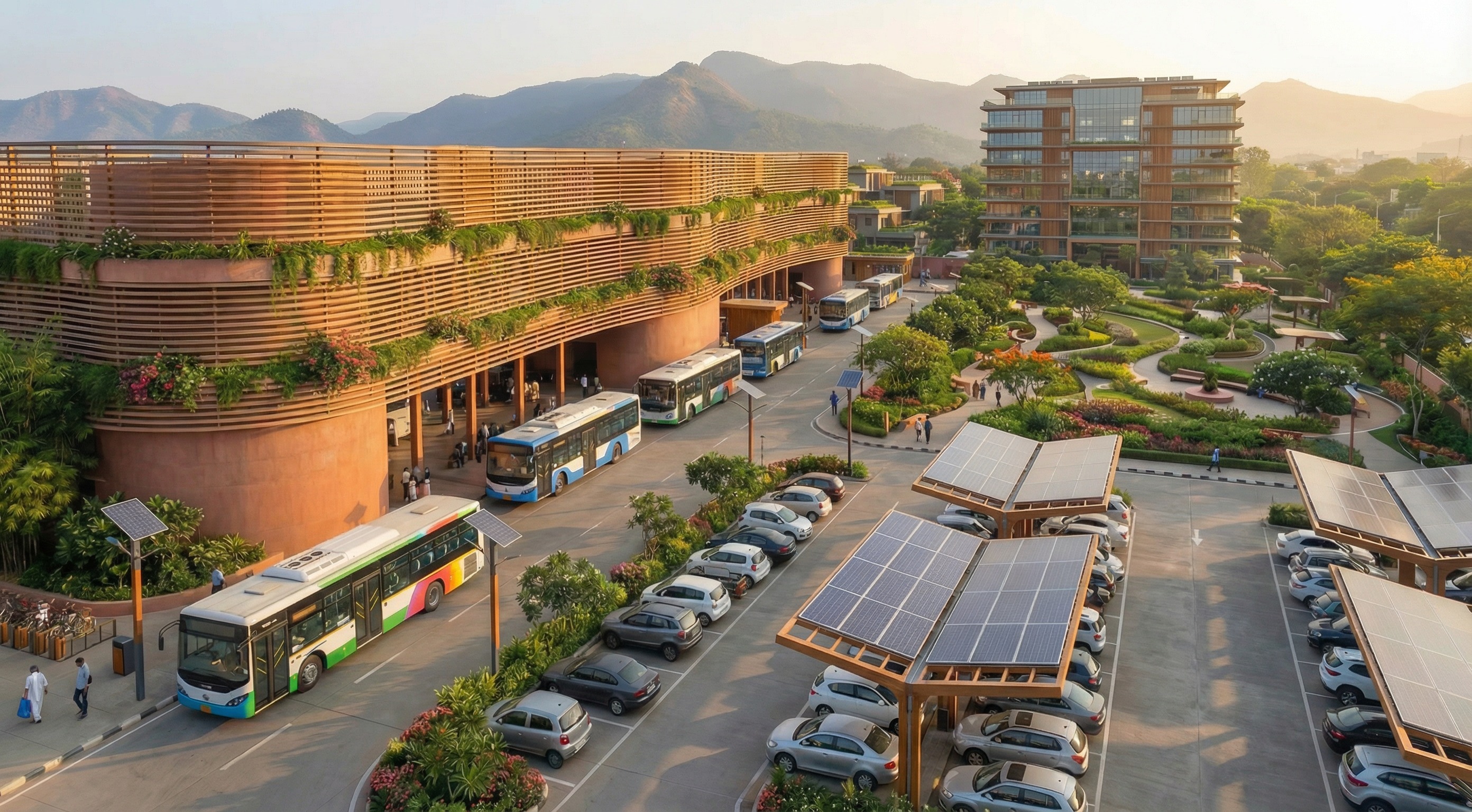 eilminate park expand open parking area to the back move to the left the tall 10 story building place it behind frontal building