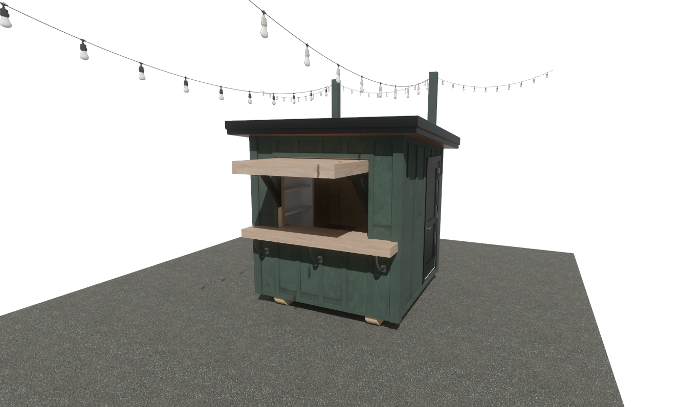 add a parking lot sstyle bakground as if this hut was in an european vendor market in elmvale ontario