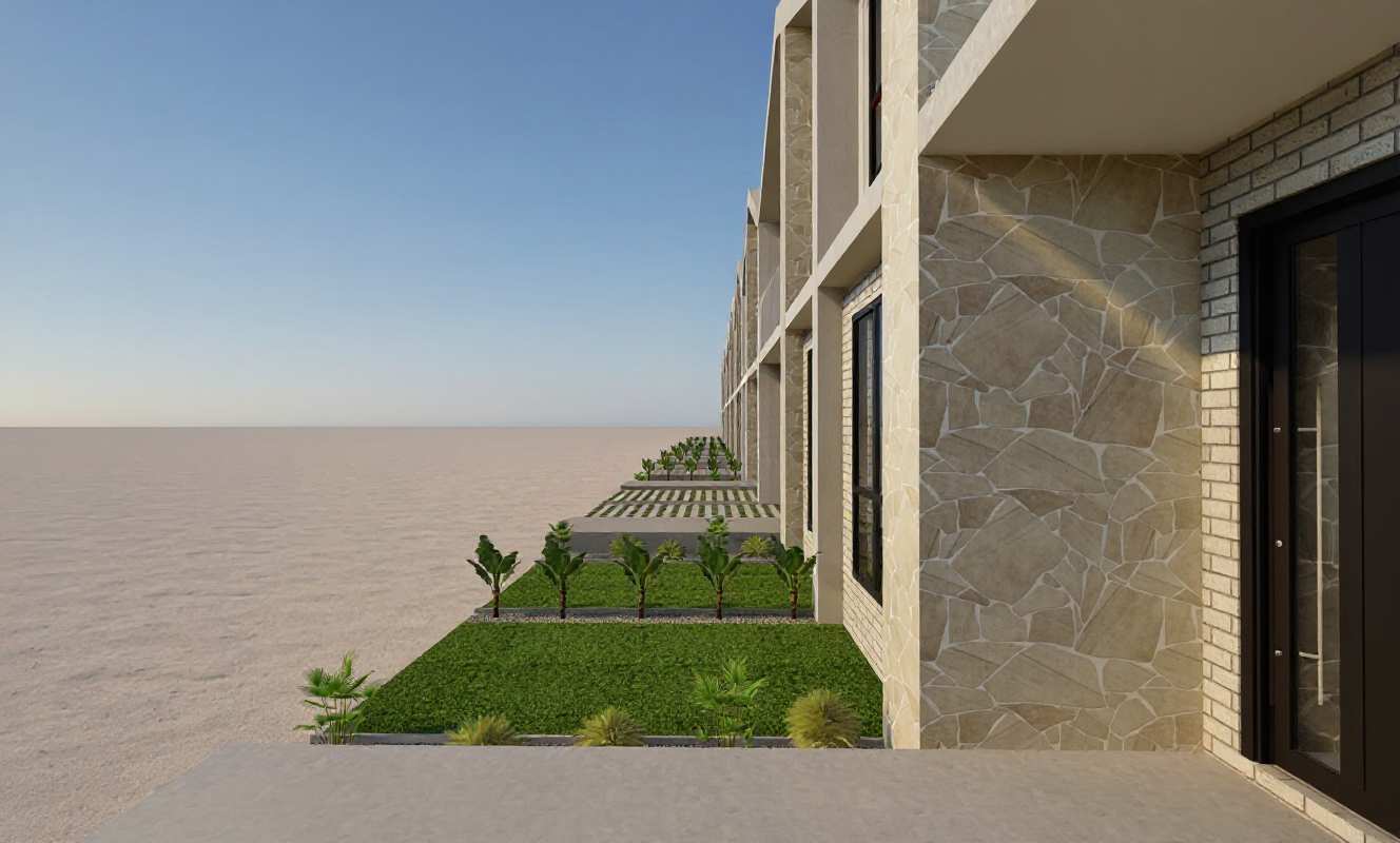 i want in this photo to remove the cg look without changing anything in the architectural elements or colors more specifically on the stone micro contrast depth in the joints natural color not just a flat texture on the plaster correct white balance slight natural grain avoidance of blown out whites on the glass more realistic reflections better luminance gradation plants grass natural green olive warm green less oversaturated hue tonal variation do not change volumes geometry openings or in general any architectural elements i want a file at 8000px 8000px so that i can proceed with upscaling afterwards