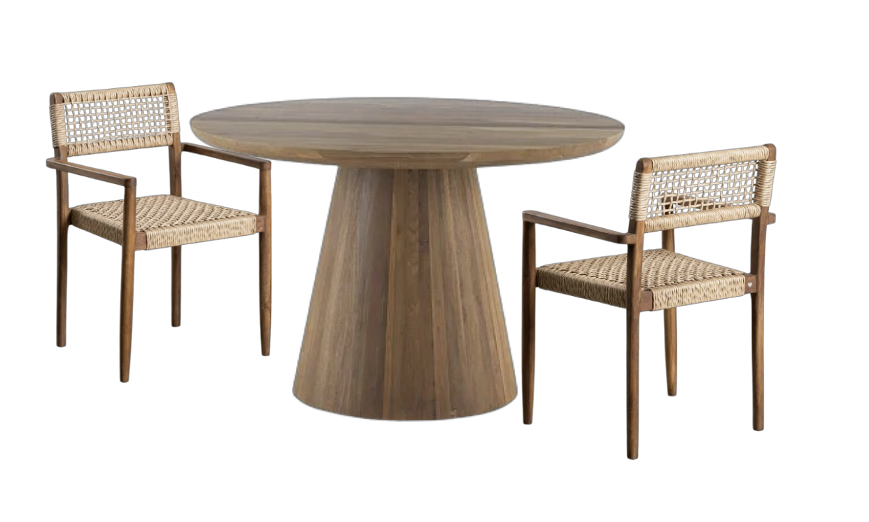 haz un conjunto real con un fondo de estudio liso pon 4 sillas en total al rededor de la mesa