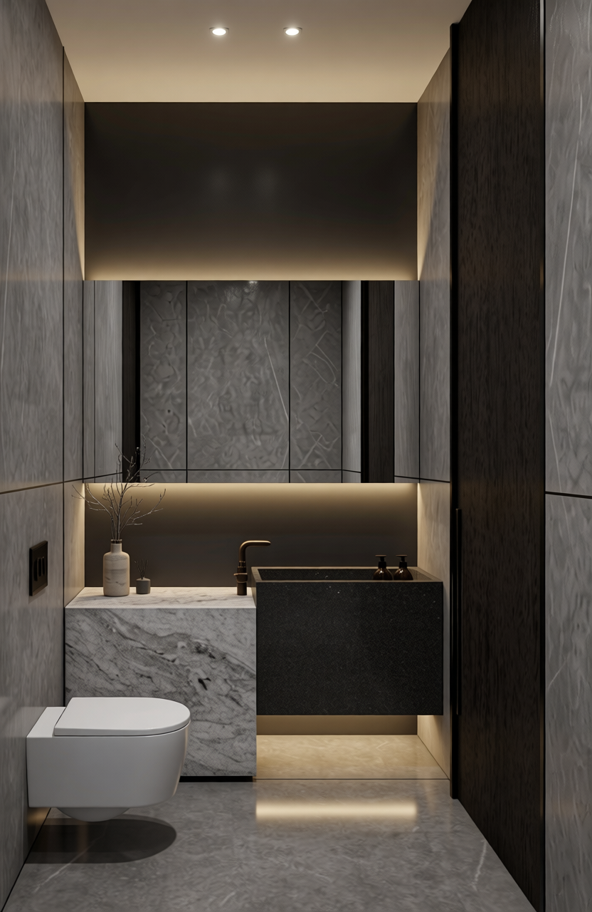 photorealistic 3d interior render of a warm and inviting reception area with a soft atmosphere creating a cozy and elegant mood the entire wall is fully clad in walnut wood rich warm tones featuring a refined vertical and horizontal structured pattern architectural and rhythmic as per reference image a custom reception desk in mortex smooth mineral matte finish in a warm beige tone complemented by a brushed gold metal countertop subtle reflections premium detailing a design armchair in terracotta fabric soft texture and welcoming shape placed on a colorful cloud shaped rug with organic forms and warm hues high end contemporary interior design realistic materials and textures global illumination soft shadows accurate scale architectural interior photography style ultra detailed high realism