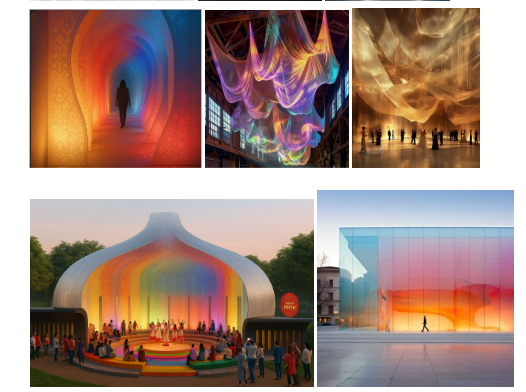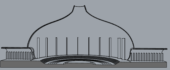 exterior shot the builiding is on the ground but the amphitheatre stage goes under the ground and day light view with park view surrounding