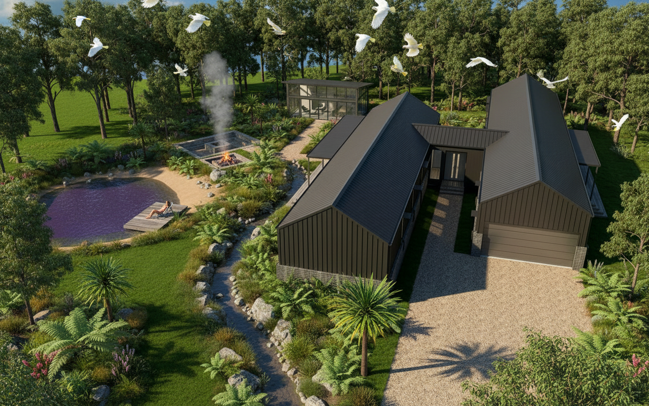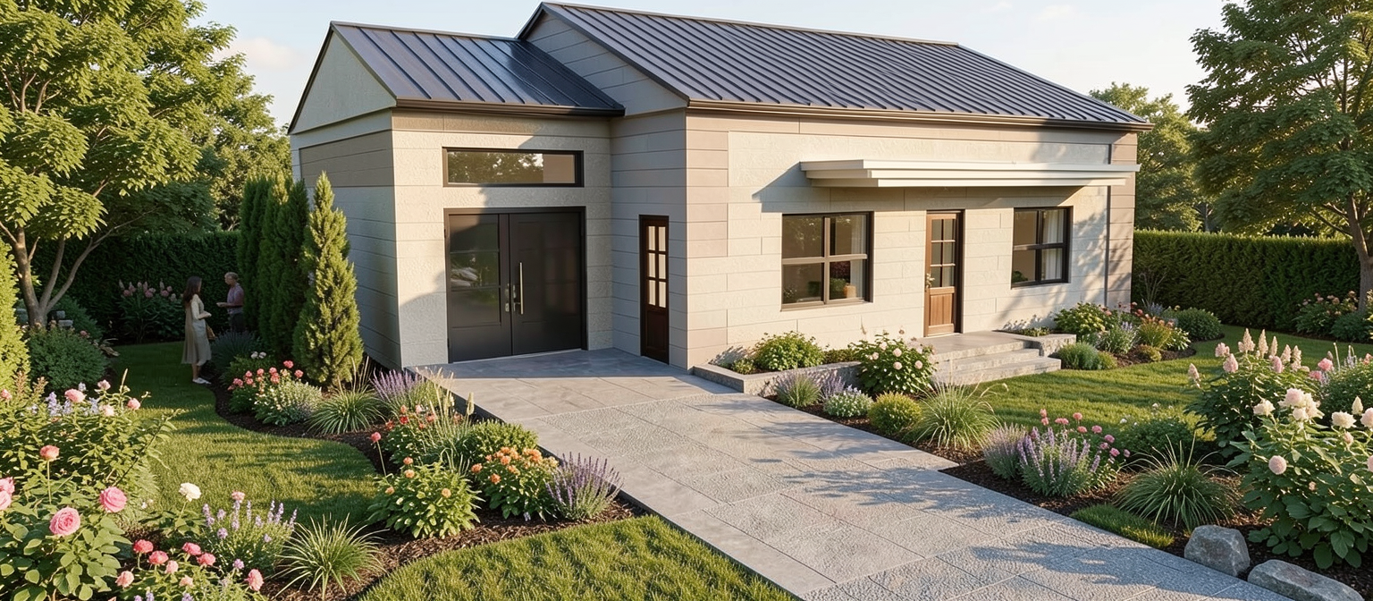 generate front angled to the side view from front and side elevation the driveway is a courtyard entry