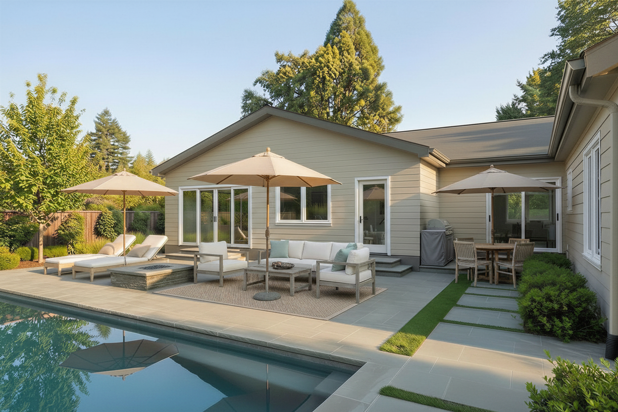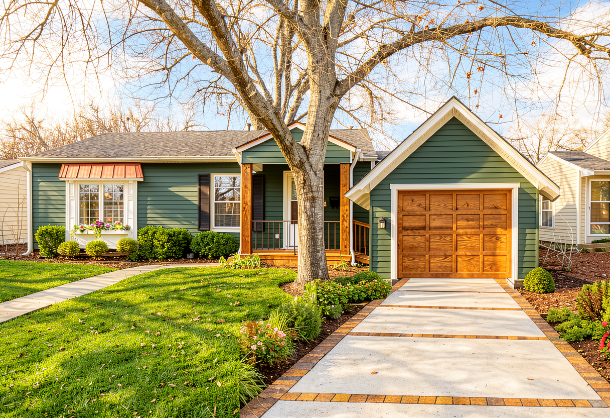 remove both sconces by garage door add gooseneck sconce over garage door in copper finish