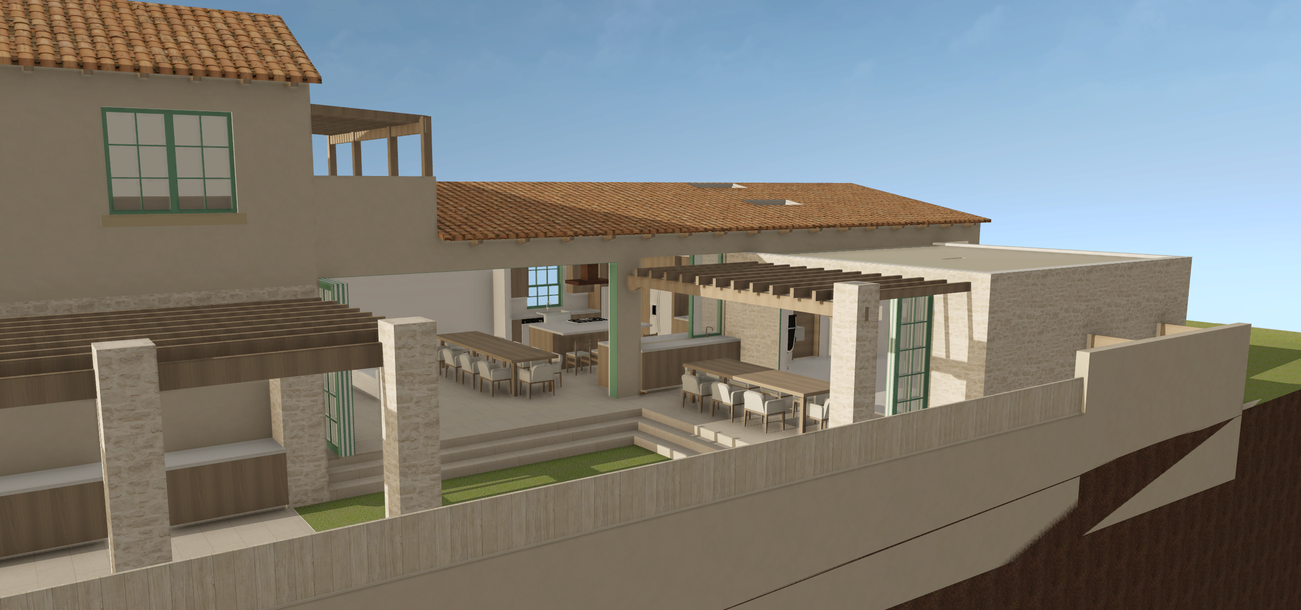 this is an exterior view looking in please remove what you can of the dead parts of the model make the overall view complete though modern organic vibe