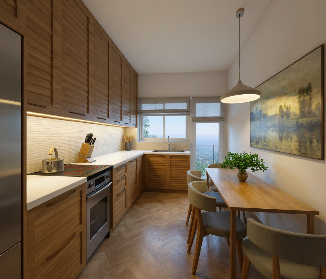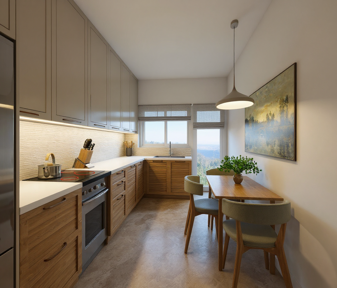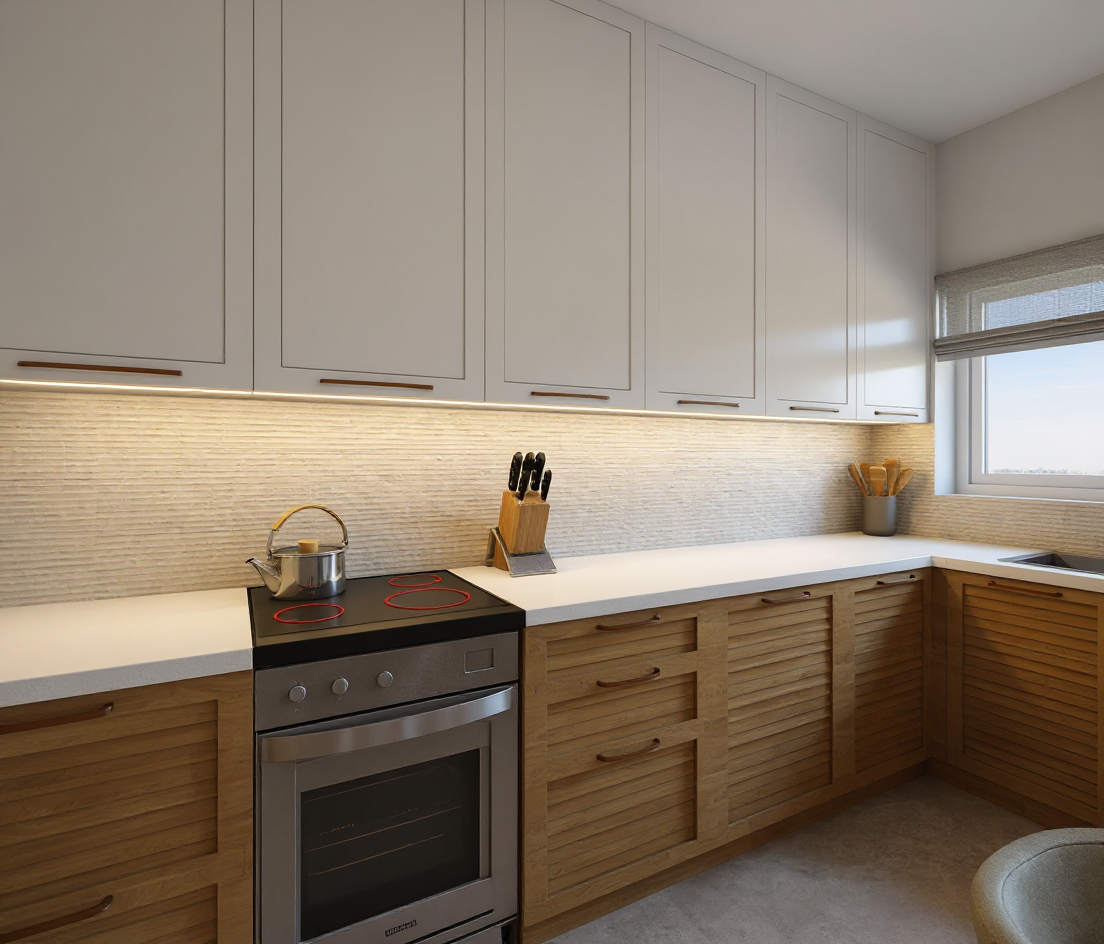 image to image render modify only the kitchen cabinet color so that all upper and tall cabinets match the exact same color as the walls and ceiling tikkurila kaoliini warm soft off white matte keep the island in natural oak exactly as it is do not change anything else same geometry layout and proportions same lighting same island material natural oak same countertops and marble backsplash same window floor stools walls and ceiling just unify the cabinet color to match the walls and ceiling for a calm minimalist scandinavian look style soft warm minimalism scandinavian photorealistic natural daylight 8k material accuracy