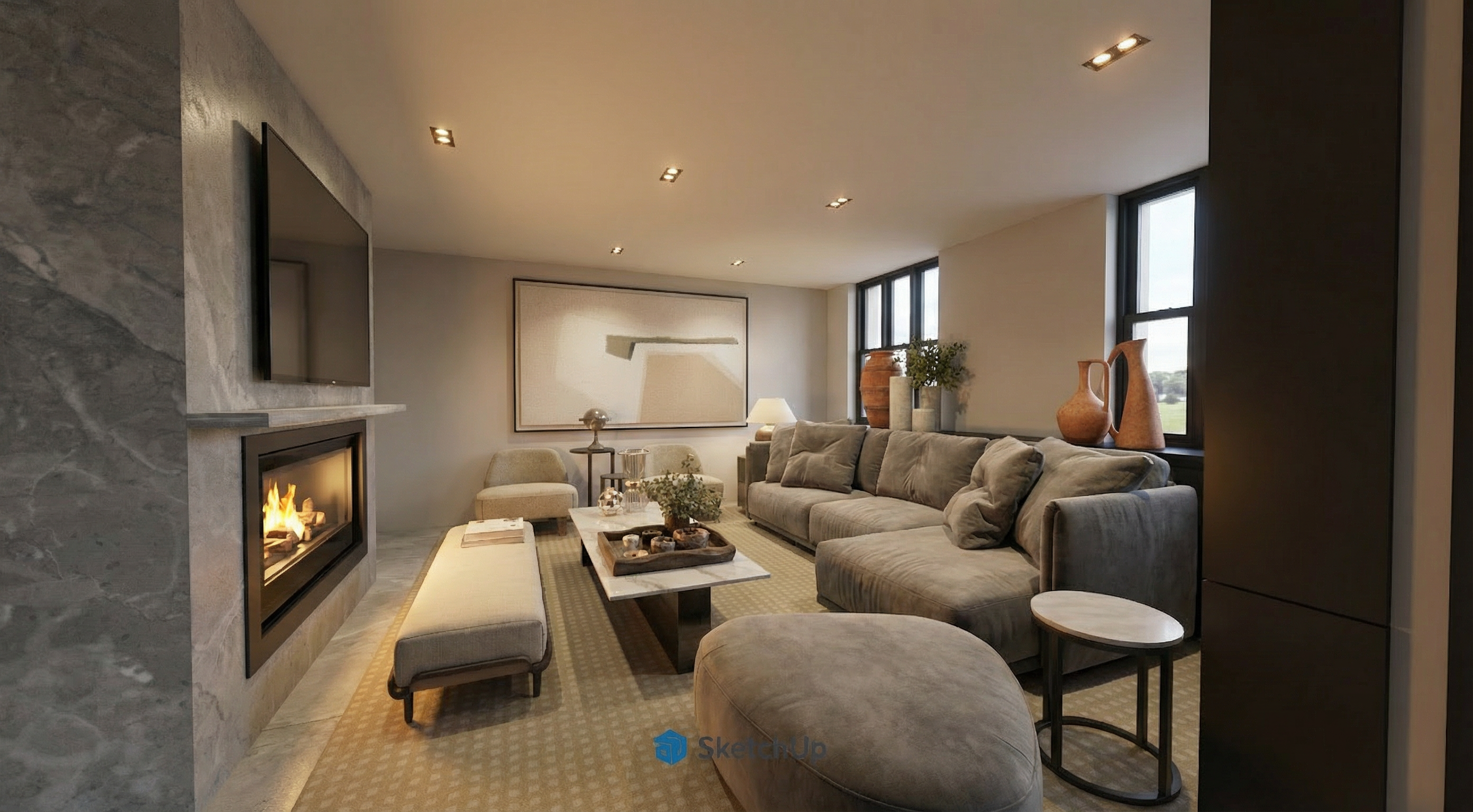 don t change the camera angle add hawaiian ocean themed elegant and chic mosaic art on the entire fascia this mosaic art is very subtle and made of white gold silver beige tiles fill the shops with souvenir shops don t change the gate lounge on the right add cove light on the ceiling