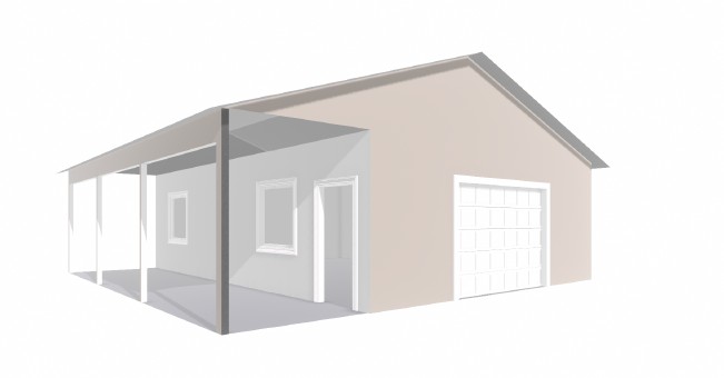 add some subtle sky and realistic background but not too distracting add a driveway to the garage add realistic landscaping that is balanced with the building but not too busy but add some varied plants with color and greenery