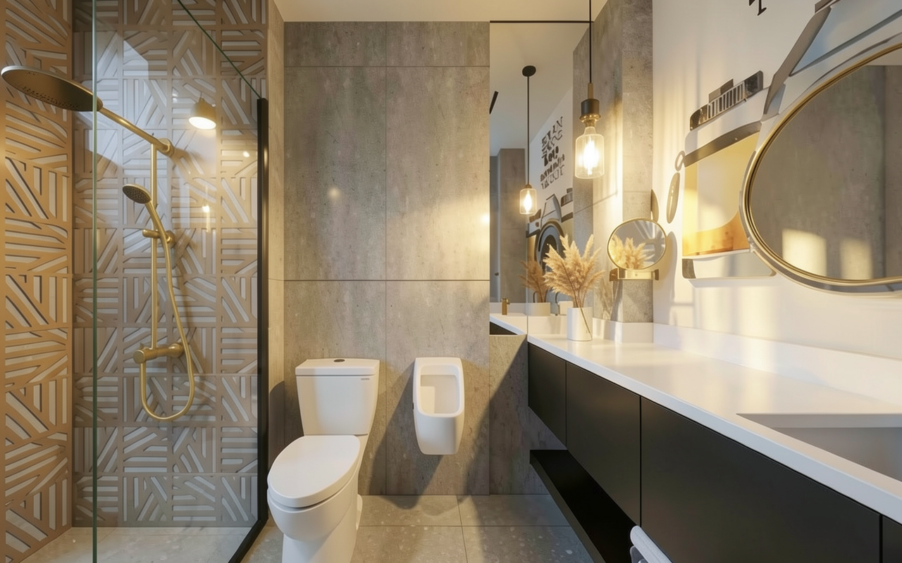 modernist interior shot decorated solid white bookshelf glossier floor architecture