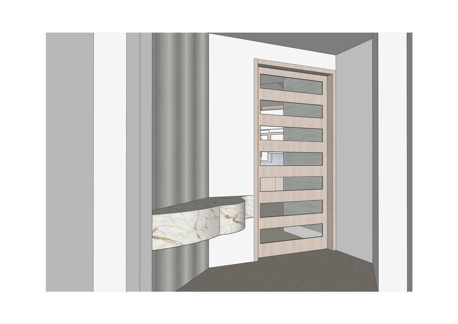 transform the provided elevation into a hyper realistic interior photograph that is indistinguishable from a real professionally shot interior design photograph this must read as a real space captured by a camera not a rendering not a visualization not architectural cg not concept art and not an illustration geometry lock non negotiable preserve the exact original geometry layout proportions ceiling details wall depths panel divisions openings doors cabinetry locations millwork dimensions built ins and circulation paths with zero architectural changes nothing may move scale simplify or be reinterpreted geometry must remain absolutely unchanged camera derivation critical derive the camera position height angle and framing strictly from the uploaded elevation eye level interior photography centered or naturally balanced composition 24 35mm interior lens feel no dramatic angles no stylized framing do not reuse or approximate camera framing from any previous image remove all drawing artifacts completely remove all linework cad edges drafting outlines diagrammatic shapes sketch artifacts nothing may appear outlined flat schematic or illustrative the elevation must be visually reinterpreted as a finished real interior photograph material realism rules wood if present smooth solid plank material extremely subtle restrained grain matte or soft satin finish only no graphic patterns no decorative striping no visual noise wood must absorb light gently never glossy or sharp fabric upholstery if present soft compression subtle seams gentle shadowing natural fabric texture no flat color blocks stone slabs if present light natural veining soft organic variation low contrast no symmetry no bold or busy patterns stone must feel heavy and grounded walls fine surface texture slight tonal variation never flat paint edge construction realism all edges corners joints and transitions must be softly broken and physically realistic no razor sharp corners no cgi perfect edges slight construction tolerances only everything must read as fabricated installed and dimensional lighting photographic behavior lighting must behave like real high end interior photography natural daylight only unless otherwise specified realistic light bounce gentle shadow falloff uneven exposure distribution subtle brightness variation across surfaces avoid studio lighting uniform illumination over clean exposure global illumination look slight softness is preferred over sharpness camera image imperfections very important introduce subtle photographic characteristics gentle lens softness micro exposure variation natural contrast roll off mild atmospheric depth primary plane sharp background slightly softer the image must feel captured not generated absolute constraints no creative interpretation no stylization no exaggeration no added or removed elements any deviation from the original elevation geometry or intent is unacceptable negative prompt always include architectural rendering 3d visualization cgi unreal engine octane vray sketchup look flat textures graphic lines outlined edges over sharpened studio lighting concept art illustration ai look plastic materials glossy wood high contrast grain perfect symmetry keep design as shown in the picture keep the design as it is in image light cabinets are white and brown cabinets are white oak keep design in the image as it is including materials