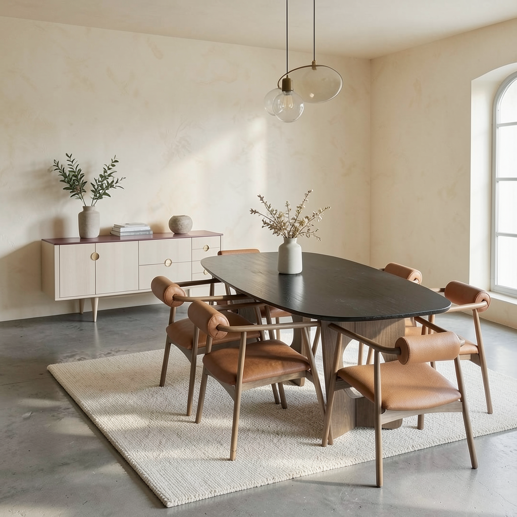 ceilings should be white windows should have white mullion window view should be the city skyline desk chairs should be a cream color chairs on the right should stay in brown
