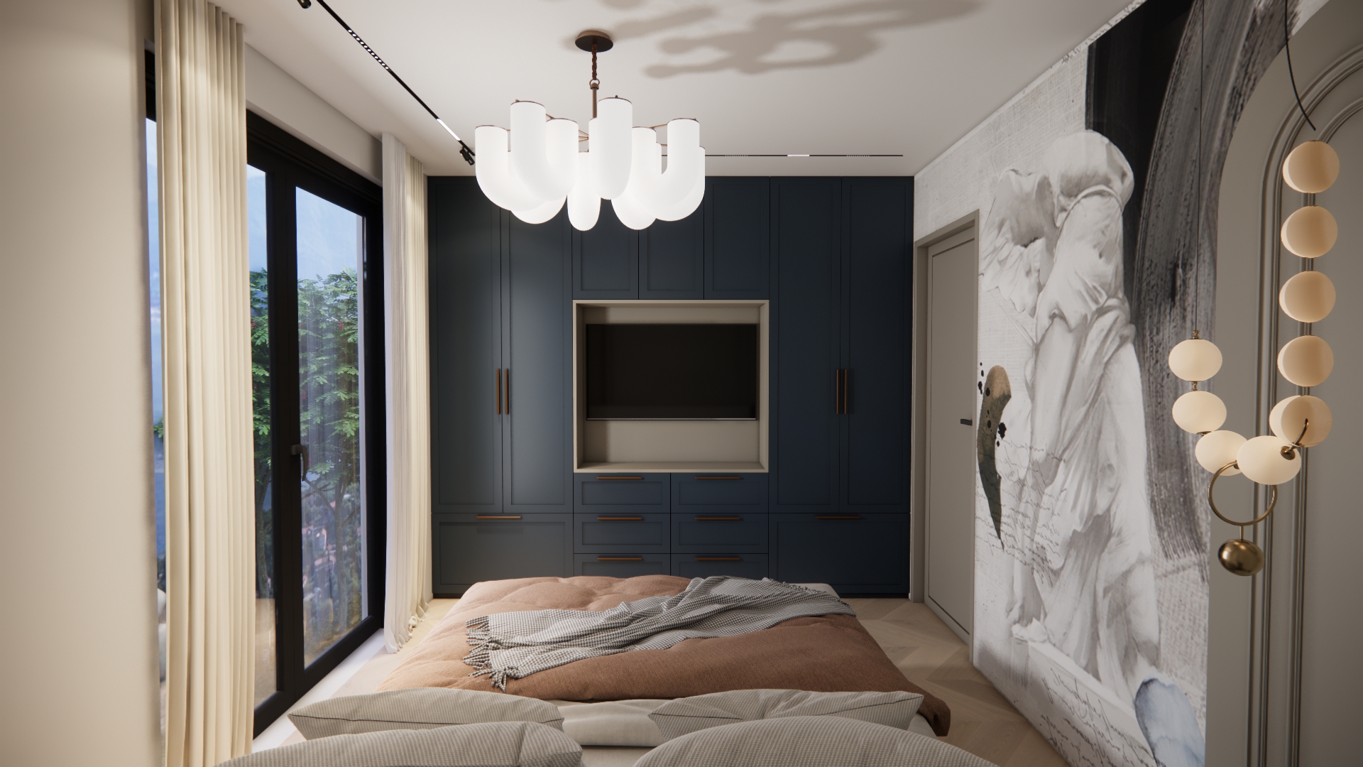keep all existing colors and furniture exactly as they are only enhance the scene by adding natural light making it look brighter and more realistic as if illuminated by soft daylight coming through windows