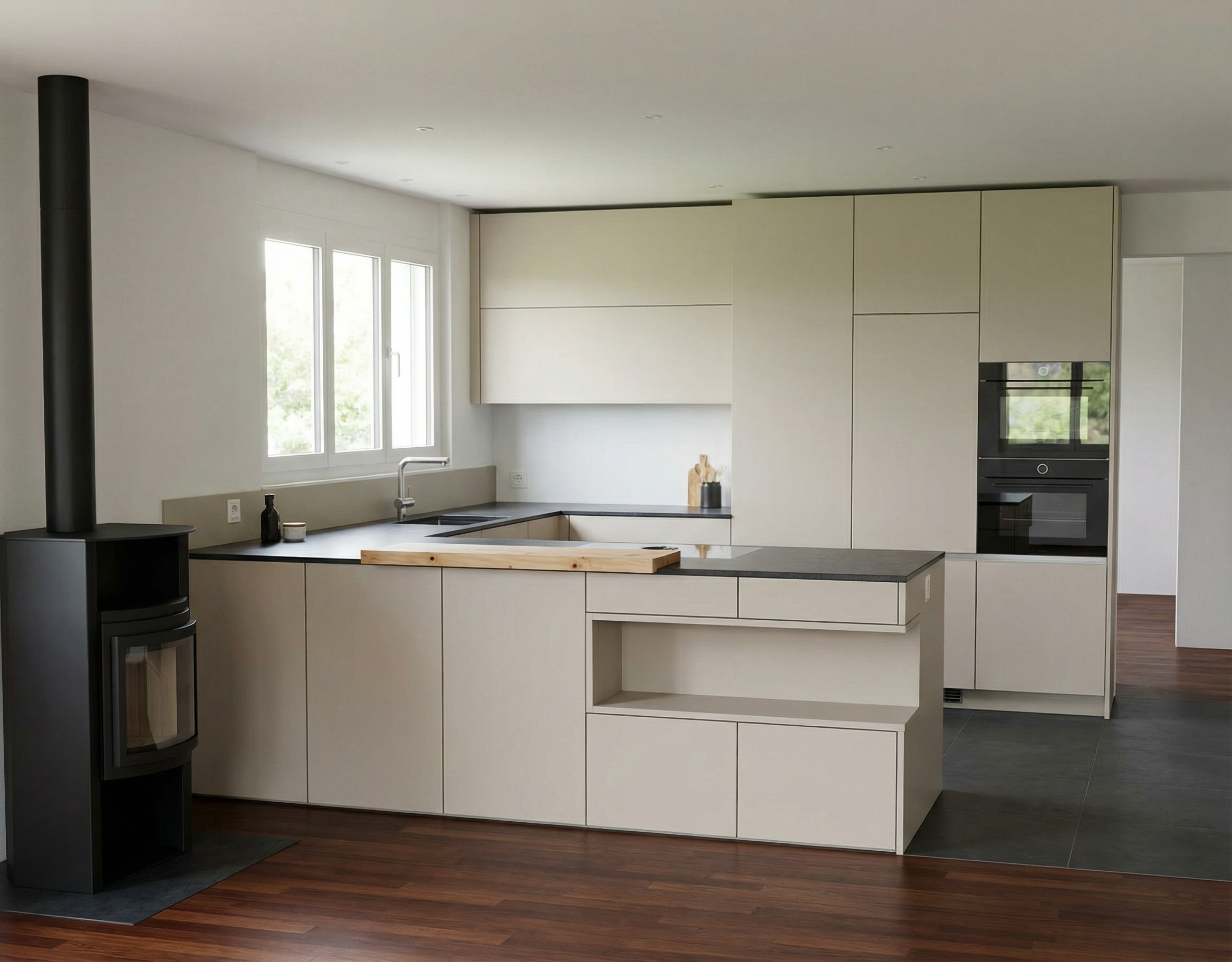 die aufrechte r ckwand links sie nur bis zum fenster geht und die r ckwand hinten bitte im gleichen material wie die arbeitsplatte die beiden steckdosen in der steinr ckwand sind schwarz bitte noch dezent etwas dekoration passend zu einer k che hinzuf gen die r ckwandh he links darf nicht ver ndert werden und bleibt niedriger wie die r ckwandh he hinten