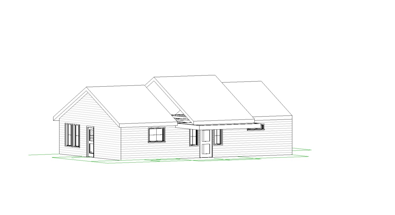 barndominium exterior shot use a dark gray shingle on the roof and white siding architecture