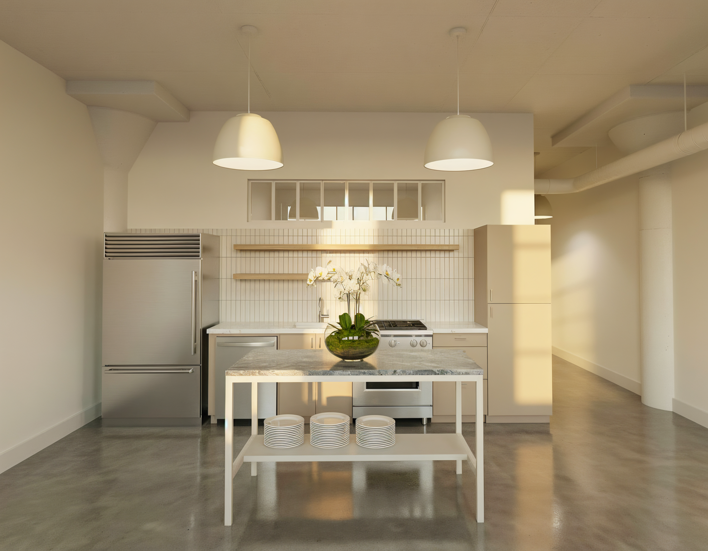 show vertically ribbed glass in window panes above kitchen wall do not change any geometry do not change any elements do not change camera angle do not change lighting do not change view