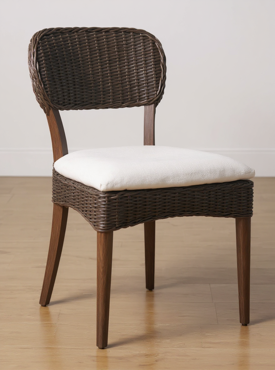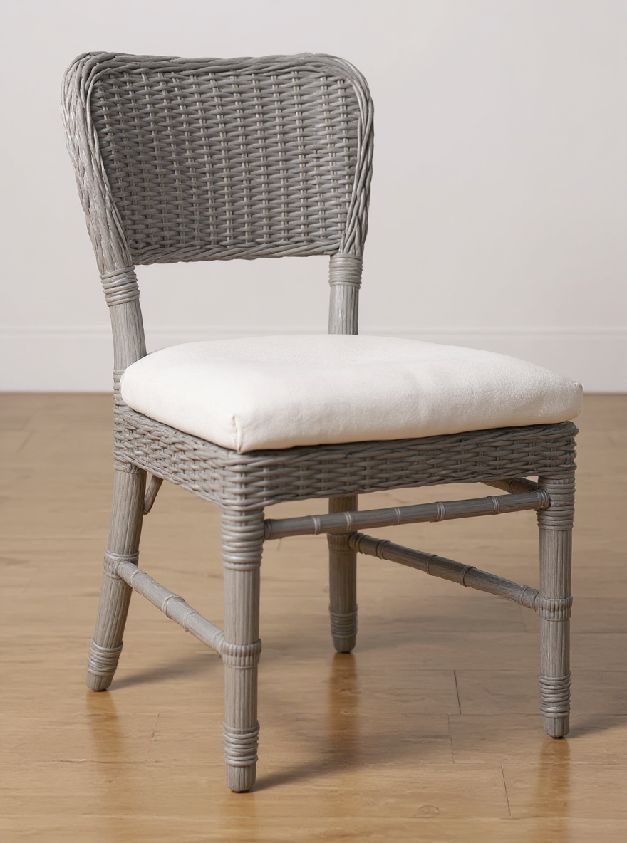 back in raffia weaving grayish brown finish upholstered white seat finish grayish brown finish chair