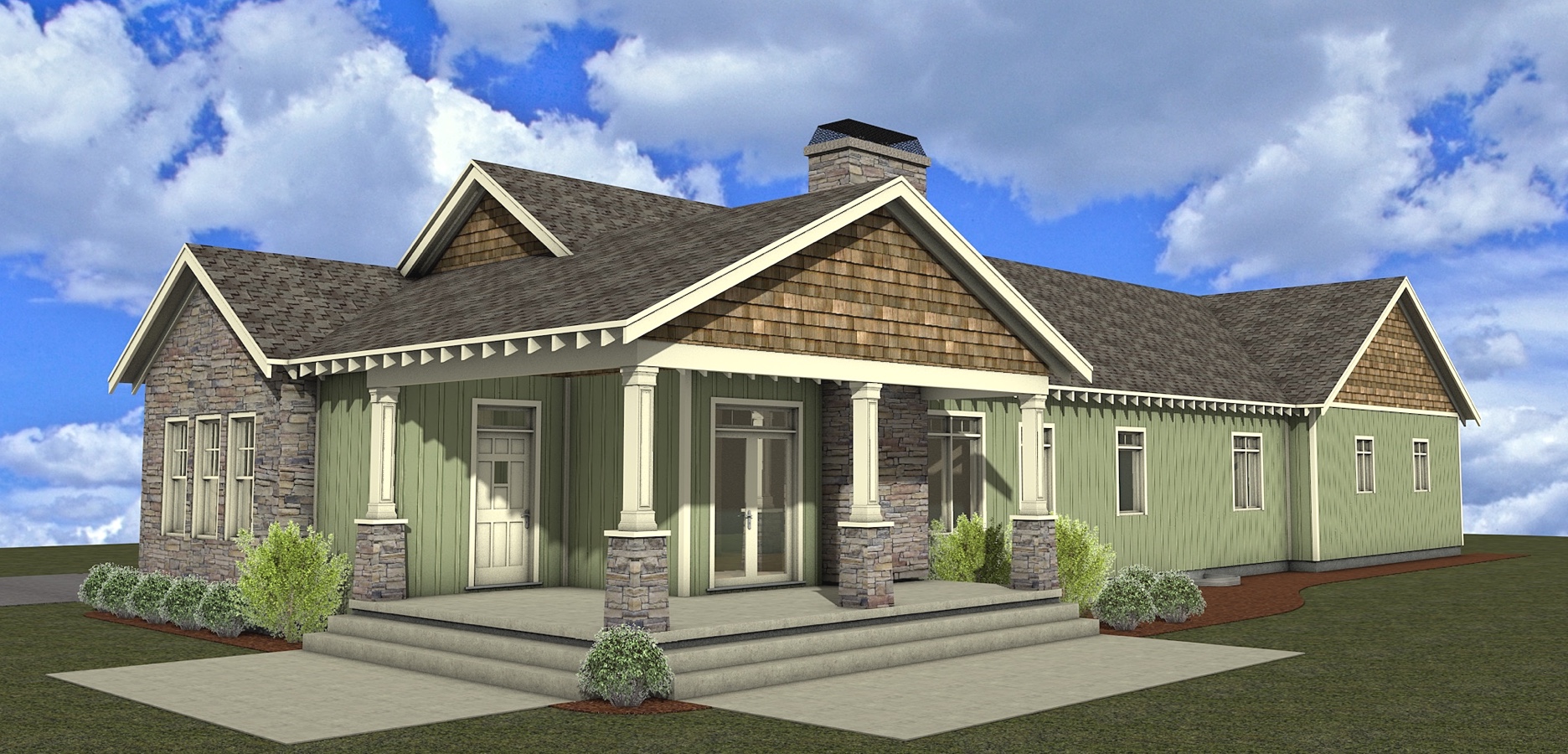 a modern house retain the exact structure colors and window arrangement rooflines siding foundation height and proportions exactly as shown in the reference image integrate into the terrain there are very few trees mixed hardwoods that are mostly on in the distance of the image add cooler afternoon sunlight subtle dappled highlights across the siding and grass create ultra realistic lighting crisp shadows detailed textures in the siding and glass reflections and an overcast sky show only a few lights visible inside render in hyper realistic architectural visualization quality 8k resolution add a driveway tying into the concrete garage door apron make it the summer season add realistic landscape