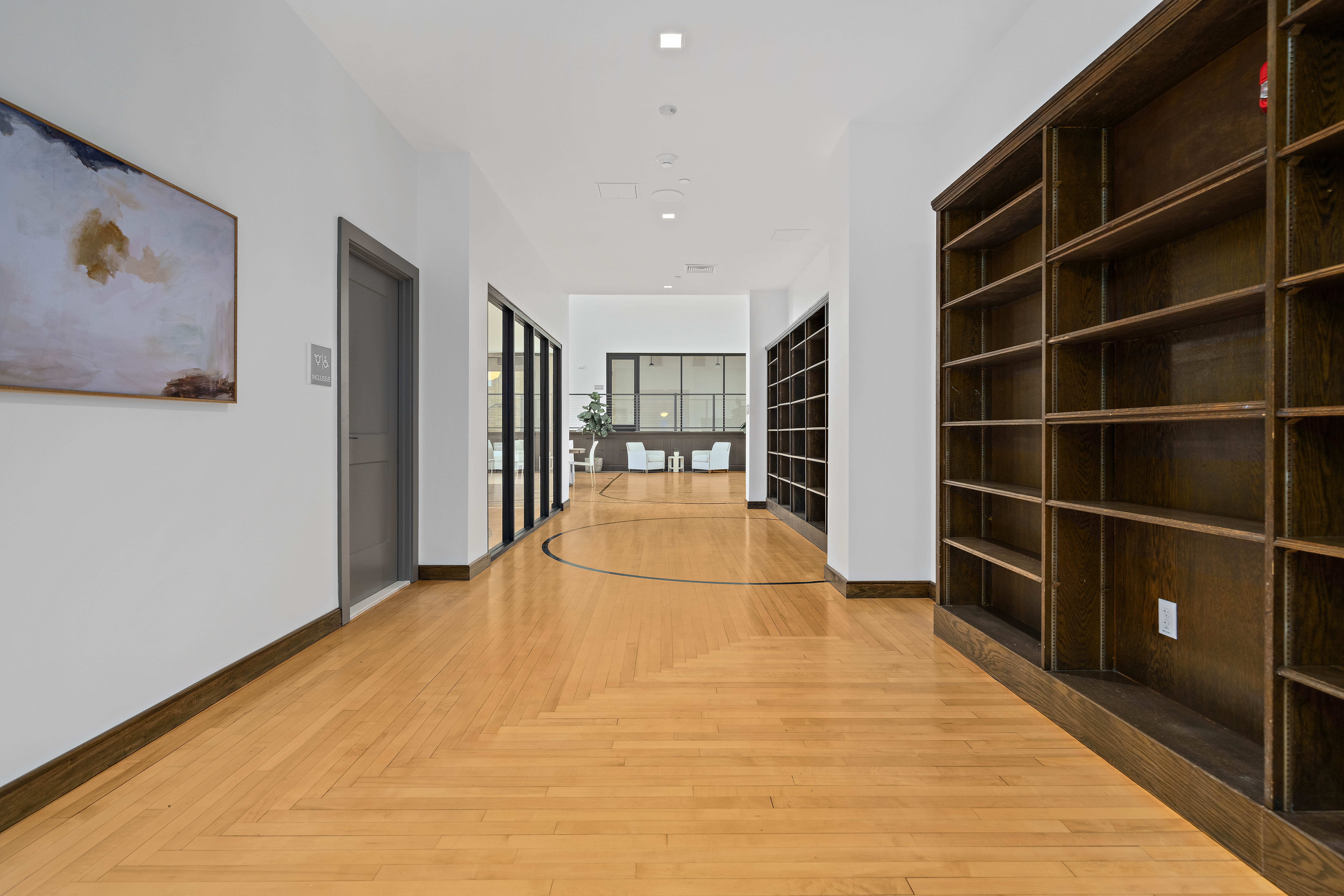add lounge chair and side table under artwork on left accessorize bookshelf