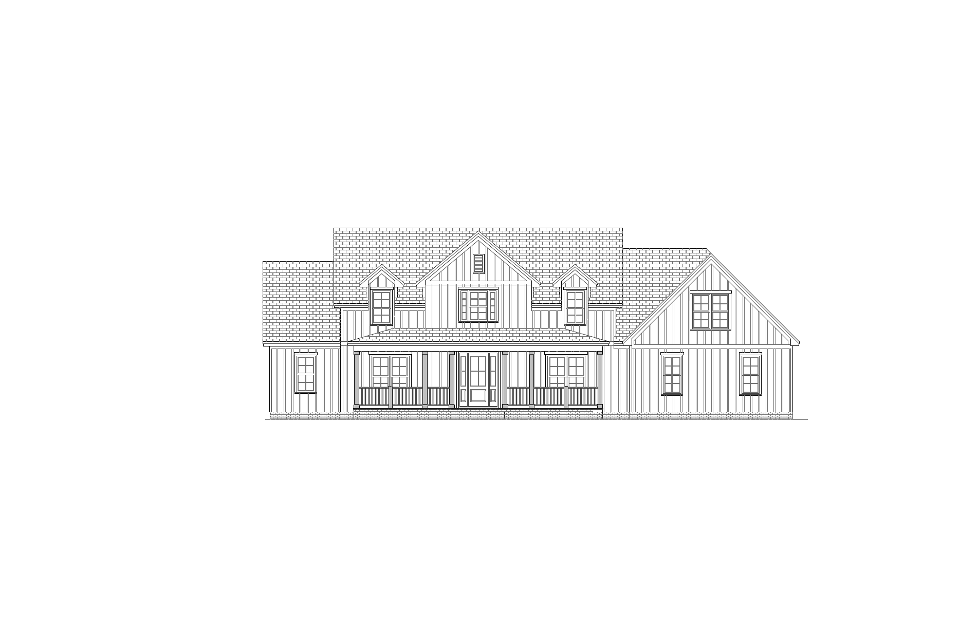 create a beautiful rendering of a charming farmhouse style house the exterior features classic white clapboard siding soft gray shingle roofing and warm brown wooden shutters around the windows include a welcoming front porch with a light gray wooden deck the windows are adorned with delicate white curtains set the house amidst a peaceful rural landscape with lush green grass and a few tall trees in the background the atmosphere is serene and inviting with soft sunlight casting gentle shadows creating a warm homely feel