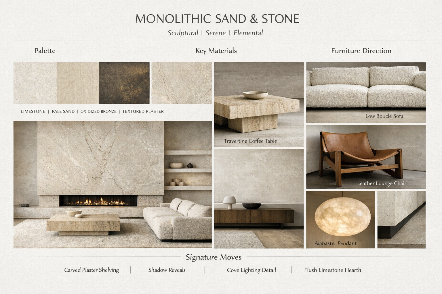 create a realistic render of a living room with two windows based on the mood board provided include the furniture on the mood board