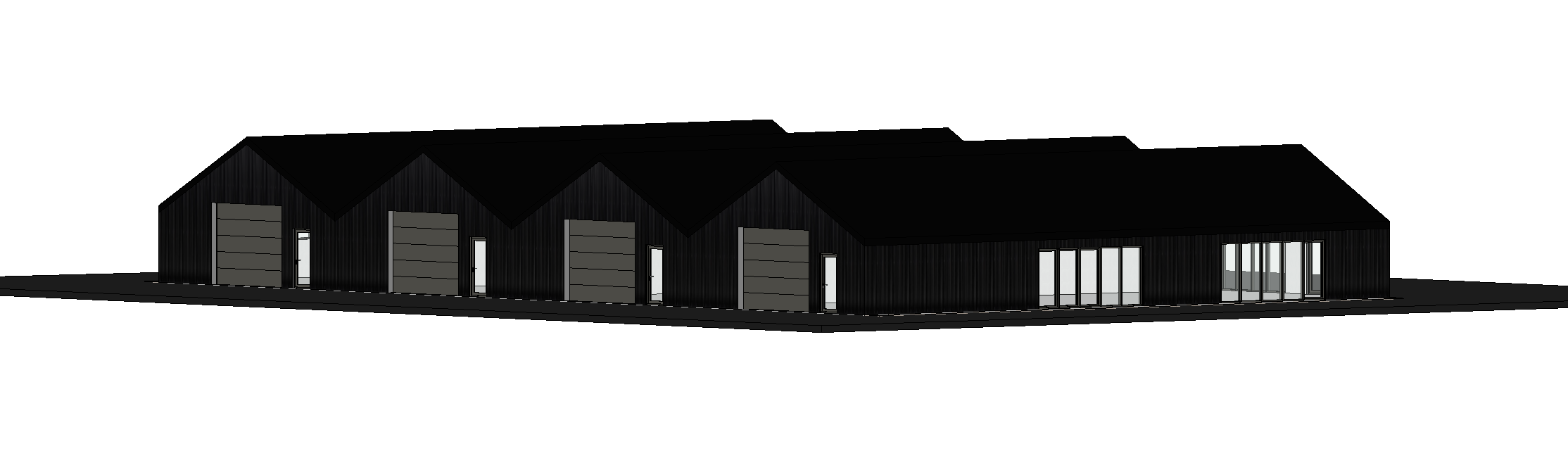 add grass tree and greenery in low concrete planters add parking lot in front