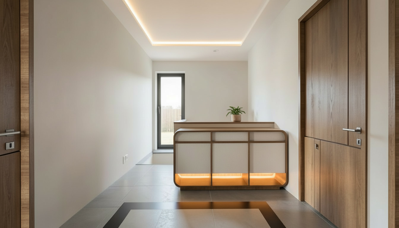 lower the intensity of the light inside the cabinet and give the floor a glossy light grey texture