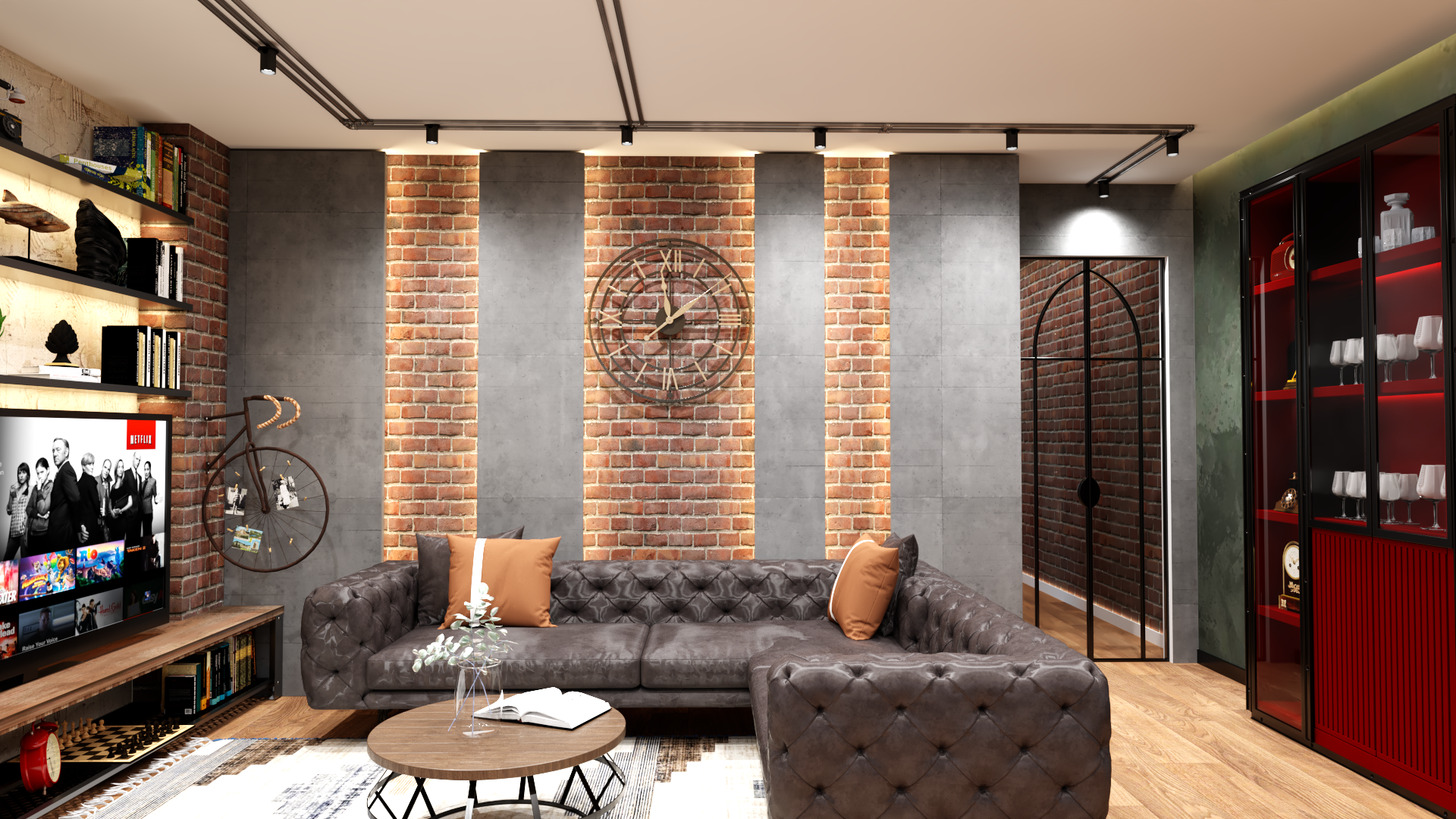 enhance this existing v ray interior render for maximum photorealism preserve the industrial style exactly as is do not change anything no geometry no layout no furniture position no materials no textures no colors no scale no added or removed objects use only natural daylight where it is physically visible coming from the existing openings improve realism through accurate global illumination realistic light bounce soft daylight shadows and proper exposure control refine material realism without altering them keep the same brick concrete fabric and wood textures only enhance depth roughness accuracy and micro details maintain neutral realistic color grading no filters no stylization use real camera behavior natural lens correct white balance subtle depth of field high resolution ultra realistic clean architectural photography look