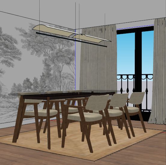 architectural interior scene fully preserving realistic materials and textures wood concrete glass metal and textiles table with a glass top in the center of the room featuring a boho style vase on top with a bouquet of white tulips soft natural light from windows combined with warm artificial light highlighting details realistic perspective accurate shadows and reflections furniture and objects in original proportions photorealistic style ultra high resolution subtle depth of field background shows a historic modernist city with ornate fa ades cobblestone streets and period architectural details integrated naturally into the scene colors and materials true to reality no artistic stylization