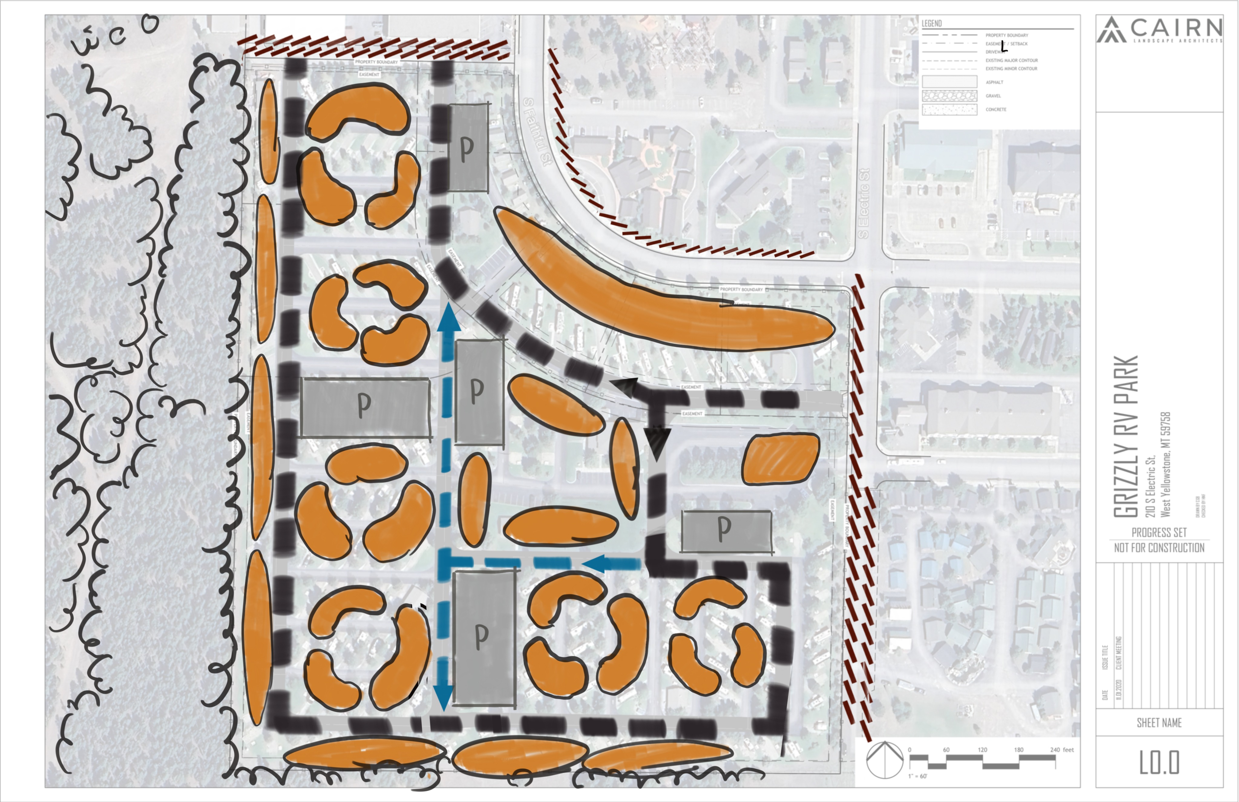 can you clean up my hand sketch still make it look like a hand sketch but add some depth clean up the arrow linework and add shadows add green to the trees on the side and bottom and make the aerial pop