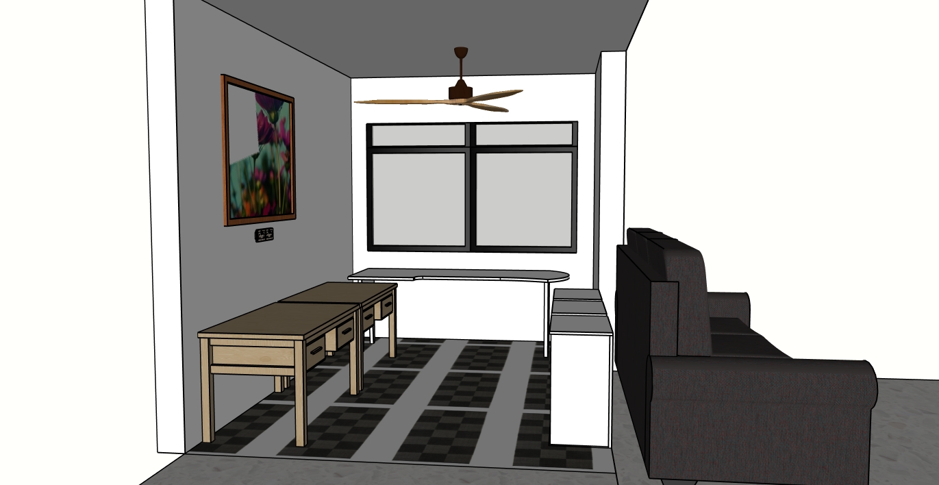 make carpet floor more uniform and add a light under the fan make it more realistic