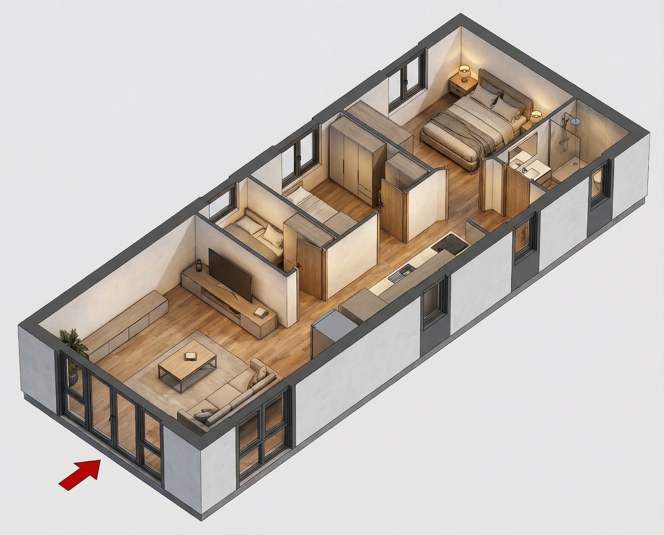 add realism and let the structe of the walls remain also do not forget that this is a clothing boutique architecture