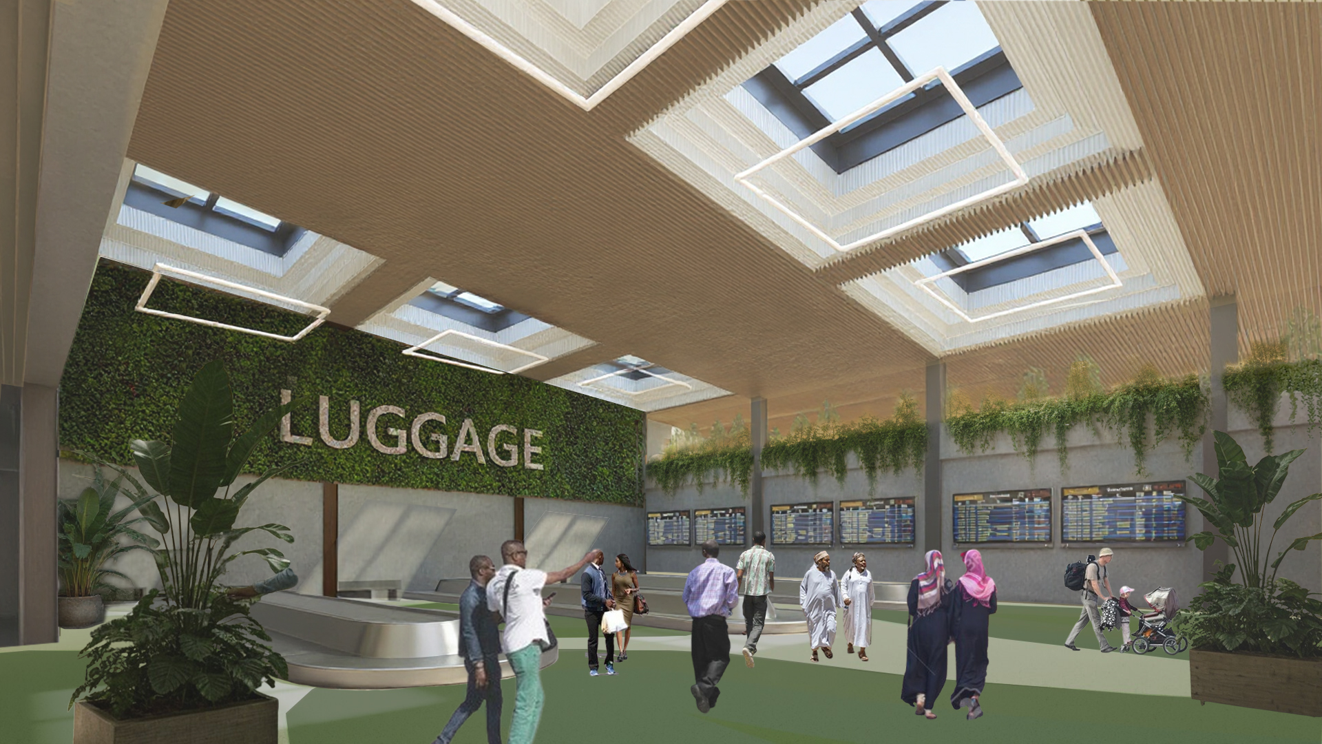 african people traveling with cuicases kids banana plants lively atmoshere greenery