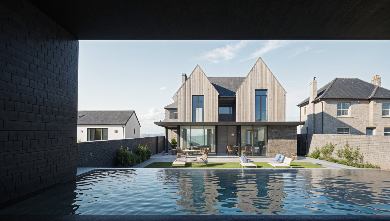 exterior shot try to apply the mood and landscape renderingstyle on the original image as an competition level rendering dont change the building just the surroundings