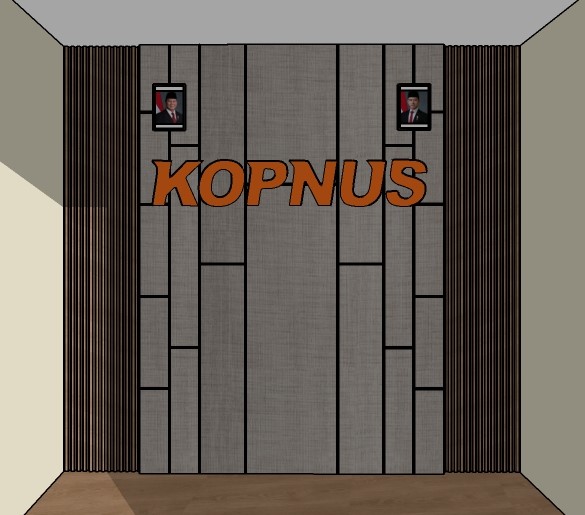 the rendering of the image is very realistic with creamy white walls and ceilings ice green marble pattern pvc panels with gold line grout and slightly recessed panels using wood material spc canyon oak wood flooring