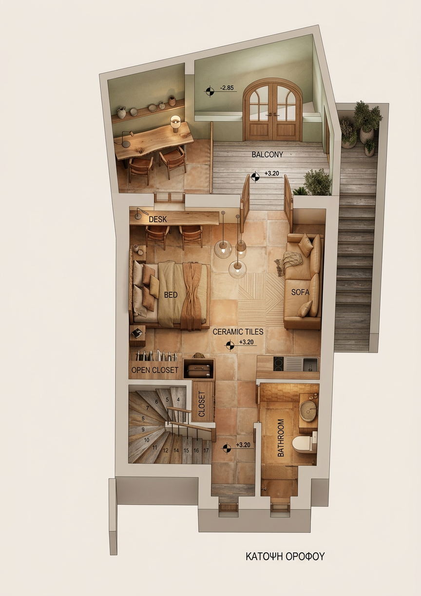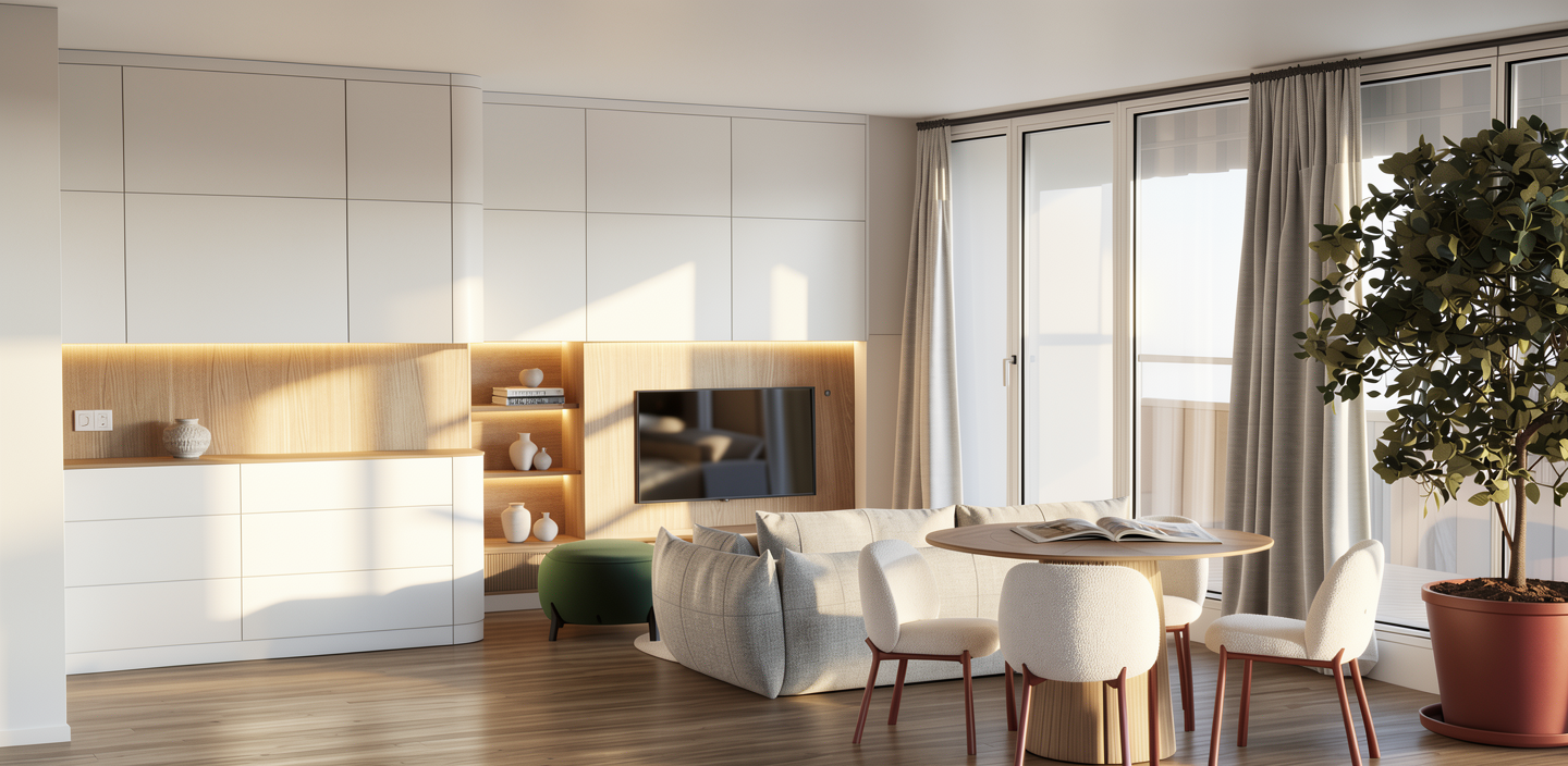 transform this restaurant interior rendering while strictly preserving the existing architecture and layout preserve exactly the geometry position proportion scale size materials textures colors and function of all existing architectural elements and furniture do not move remove resize or redesign any walls niches ceiling panels tables chairs or other objects maintain the original composition and perspective enhance the realism and richness of the existing materials by improving texture detail surface depth and subtle material variation while keeping the same materials and colors strengthen the atmosphere with warm inviting ambient lighting suitable for an elegant restaurant interior lighting modifications 1 add concealed warm lighting inside each of the three wall niches so that the light softly washes the inner surfaces of the arches the lighting must be hidden and indirect integrated into the niche architecture 2 add concealed warm lighting along the ceiling contour so the perimeter of the ceiling glows subtly the light source must remain invisible 3 add one decorative wall light centered on the wall section between the left niche and the center niche 4 add one decorative wall light centered on the wall section between the right niche and the center niche 5 place a table lamp at the exact center of every table 6 add one pendant ceiling lamp directly above every table vertically aligned with the table center design requirements for all visible light fixtures chrome metal body retro futuristic design language elegant and refined warm light temperature visually consistent across all fixtures important restrictions do not add spotlights do not introduce visible led strips keep all lighting integrated indirect and atmospheric do not alter the architecture furniture layout or spatial proportions the final result should look like the same restaurant interior but with richer material presence and a warmer more atmospheric lighting design that integrates retro futuristic chrome light fixtures