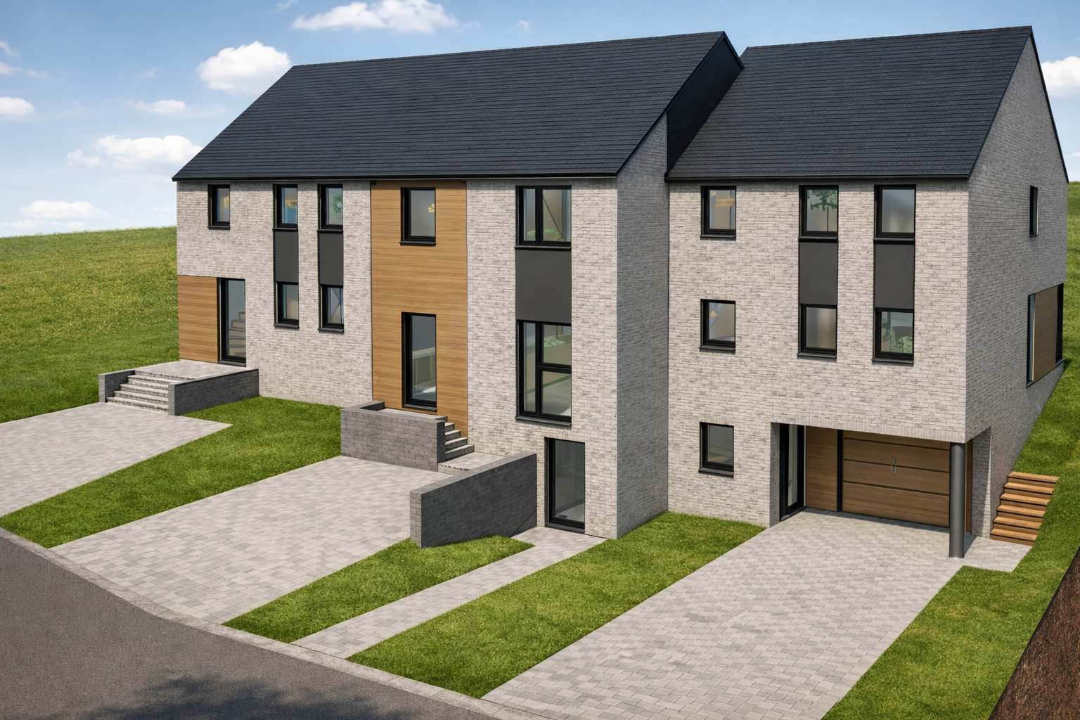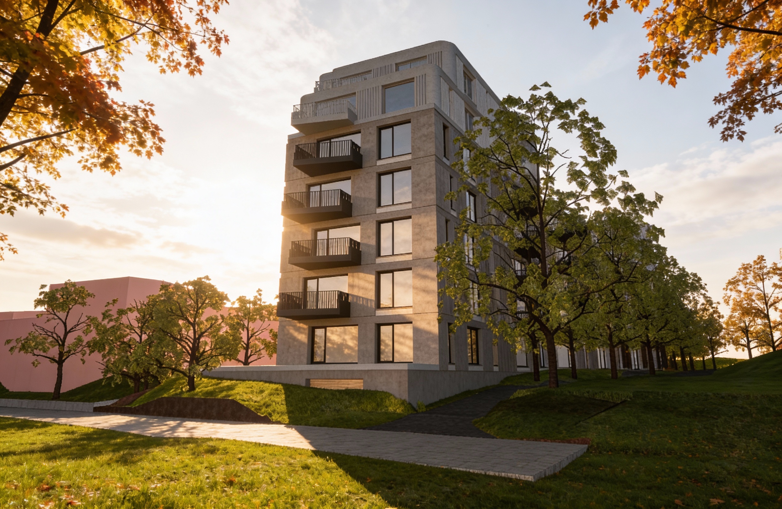lot of light and reflects in the windows in the hills of tree in belgium tree 3 peoples