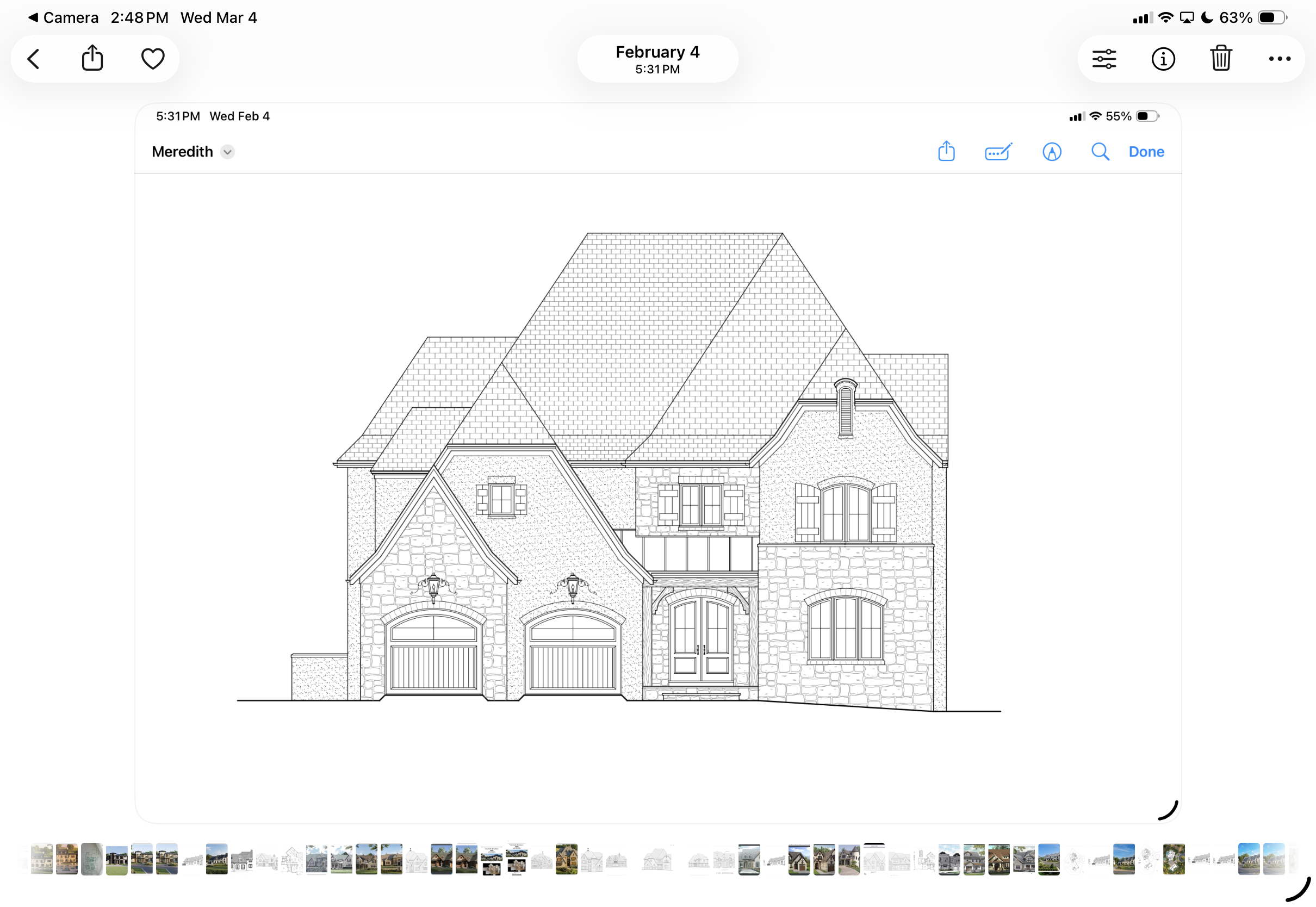 a charming french inspired house with light beige stone walls slate roofing and matching shutters the front door is rich brown wood surrounding greenery includes vibrant green grass and lush trees in varying shades of green the flower bushes have pops of white and soft pink blooms the atmosphere is serene and inviting with warm golden sunlight bathing the scene show golf green off back right corner