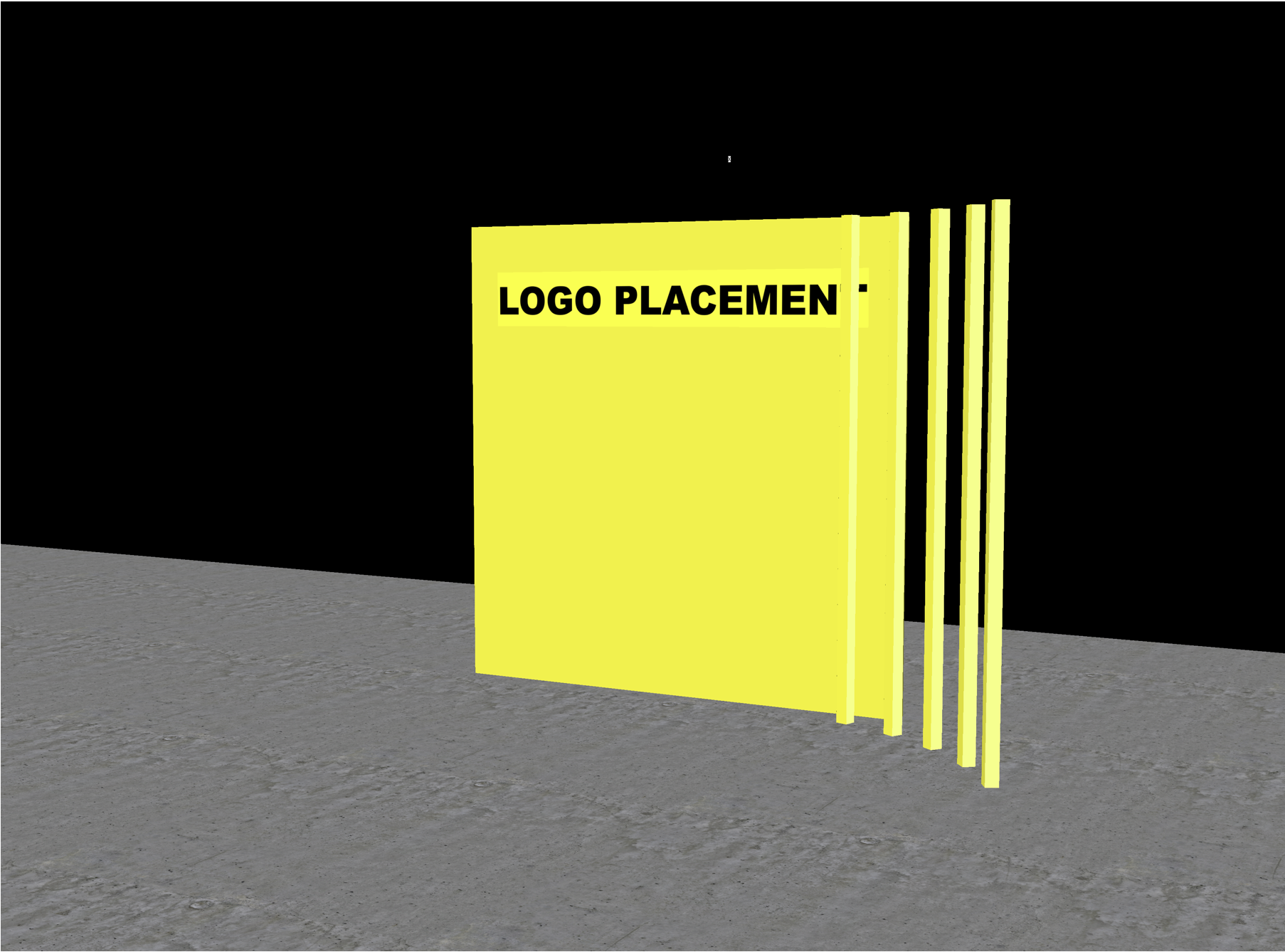 replace black background with black curtain drapes polished concrete floor blurred business people with lanyard walking past