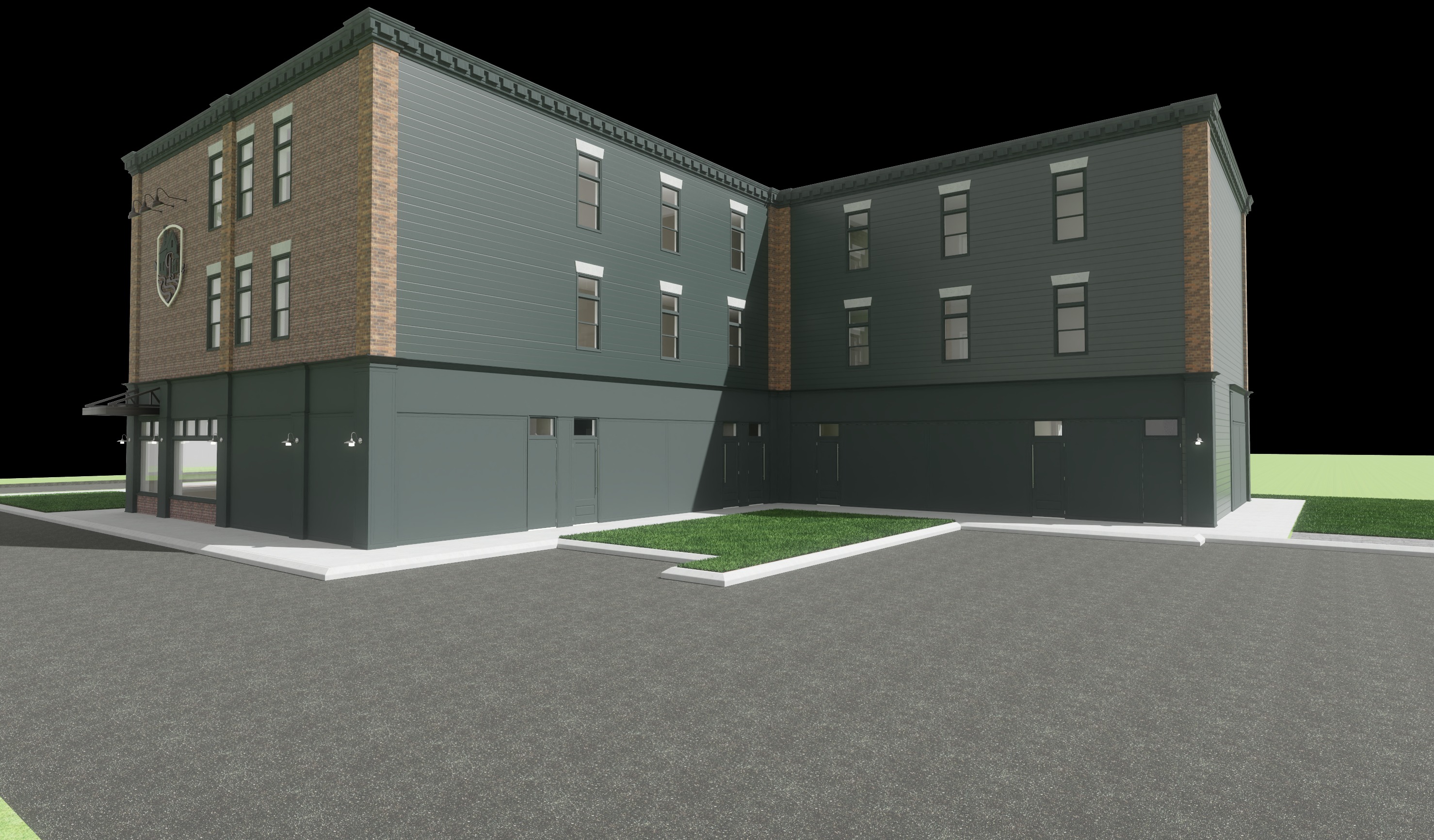can we add a small rural downtown core background similar to meaford ontario with the foreground being the parking lot for this building