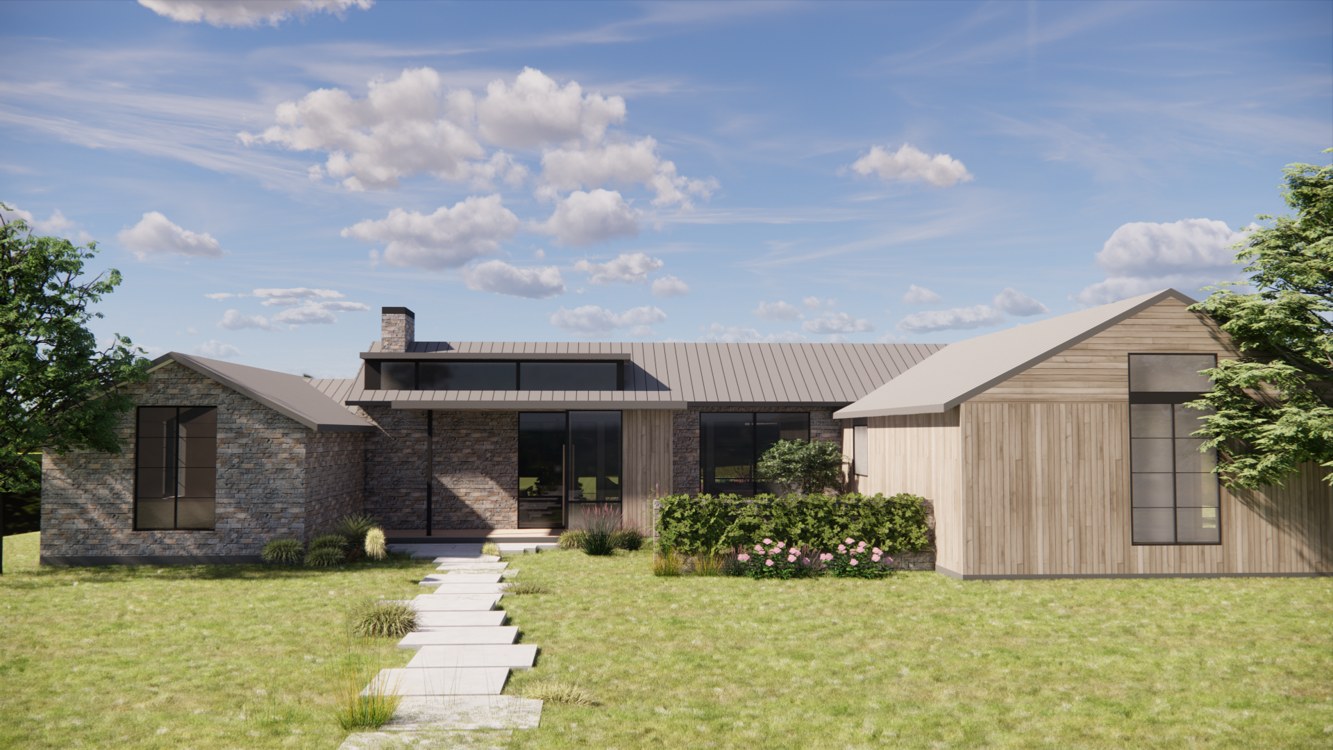 reflections on the windows lush landscape bright beautiufl day