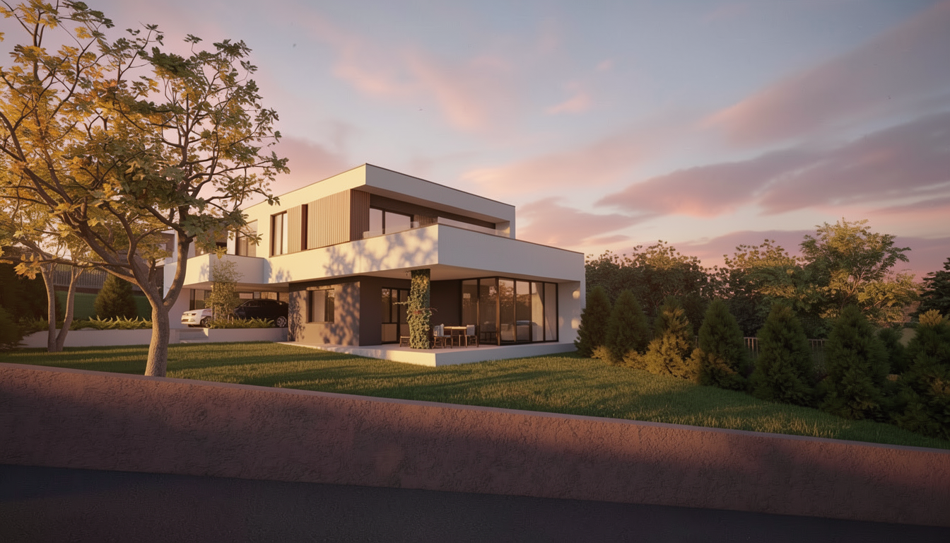 realistic keep the same geometry and color pallete beige tone metallic stripes ont the left the pavement is pebble greige beige tone
