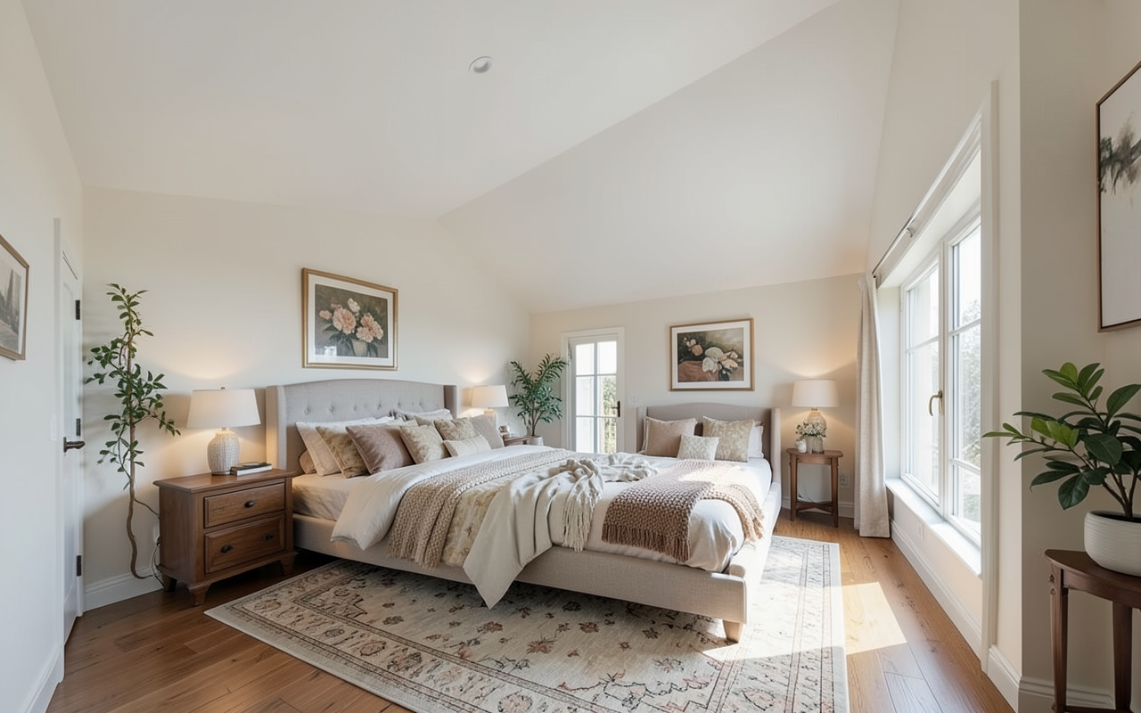 do not change any furniture do not change any materials do not add any furniture add decor and professionally dressed people improve the lighting do not change the carpet