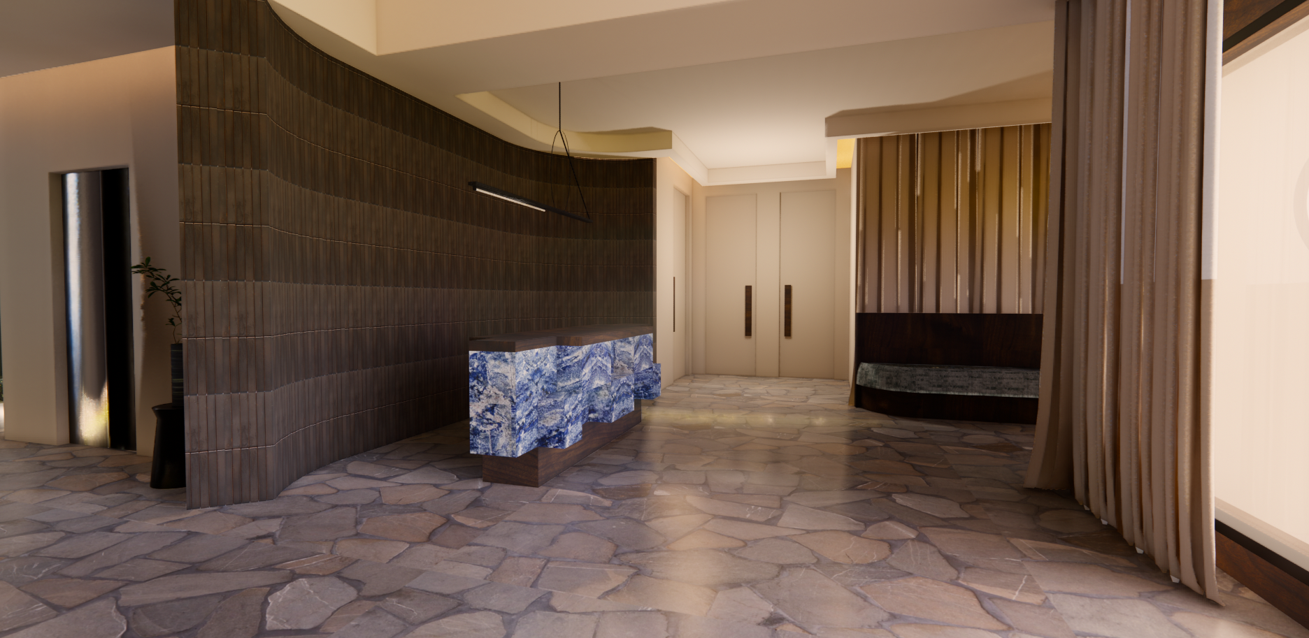 interior shot soft shadows photorealistic render add shadow people interacting some with luggages some with kids architecture