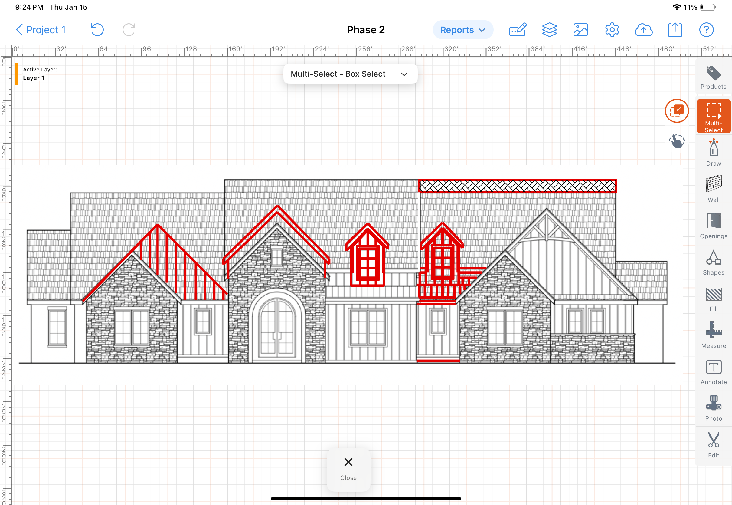 i need a photo realistic front elevation rendering matching all of the architectural design features shown precisely use light colored stone whiteboard and batten and white brick black shingle roof black window frames beautiful landscaping